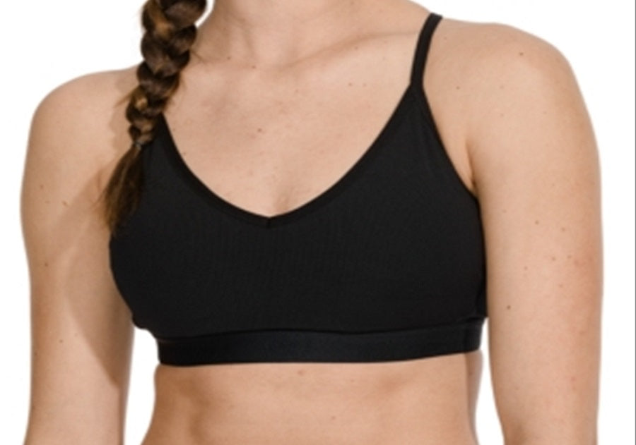 Better than braless| this sports bra gives you light support and soft| ribbed fabric for a sleek stretch fit. Slender staps and mesh at the back add cool breathability to the low-impact support.| Hits above waist; skinny racerback with adjustable straps| mesh| Full coverage