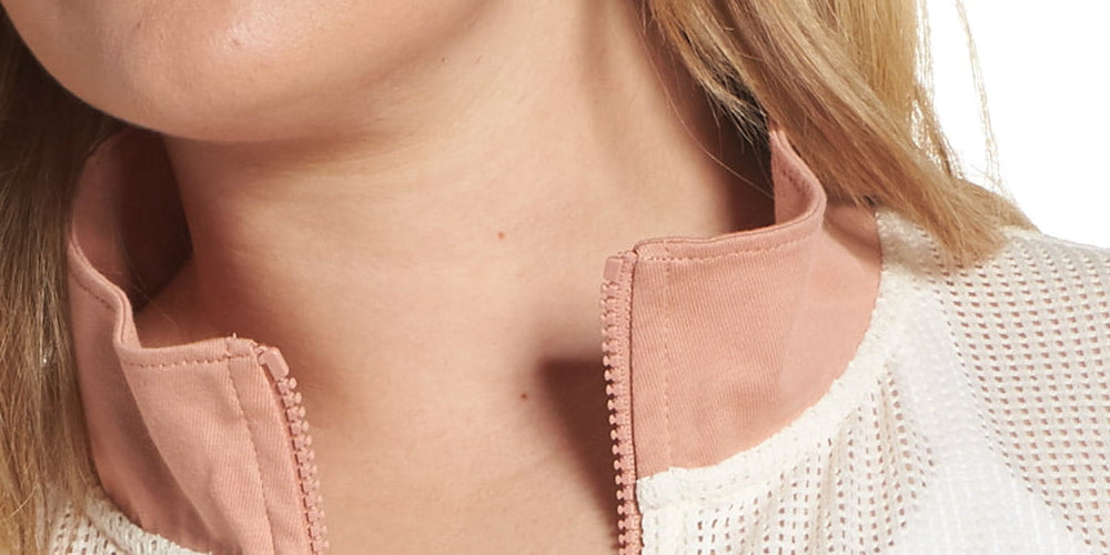 Front zip closure|stand collar|long sleeves with elasticized cuffs