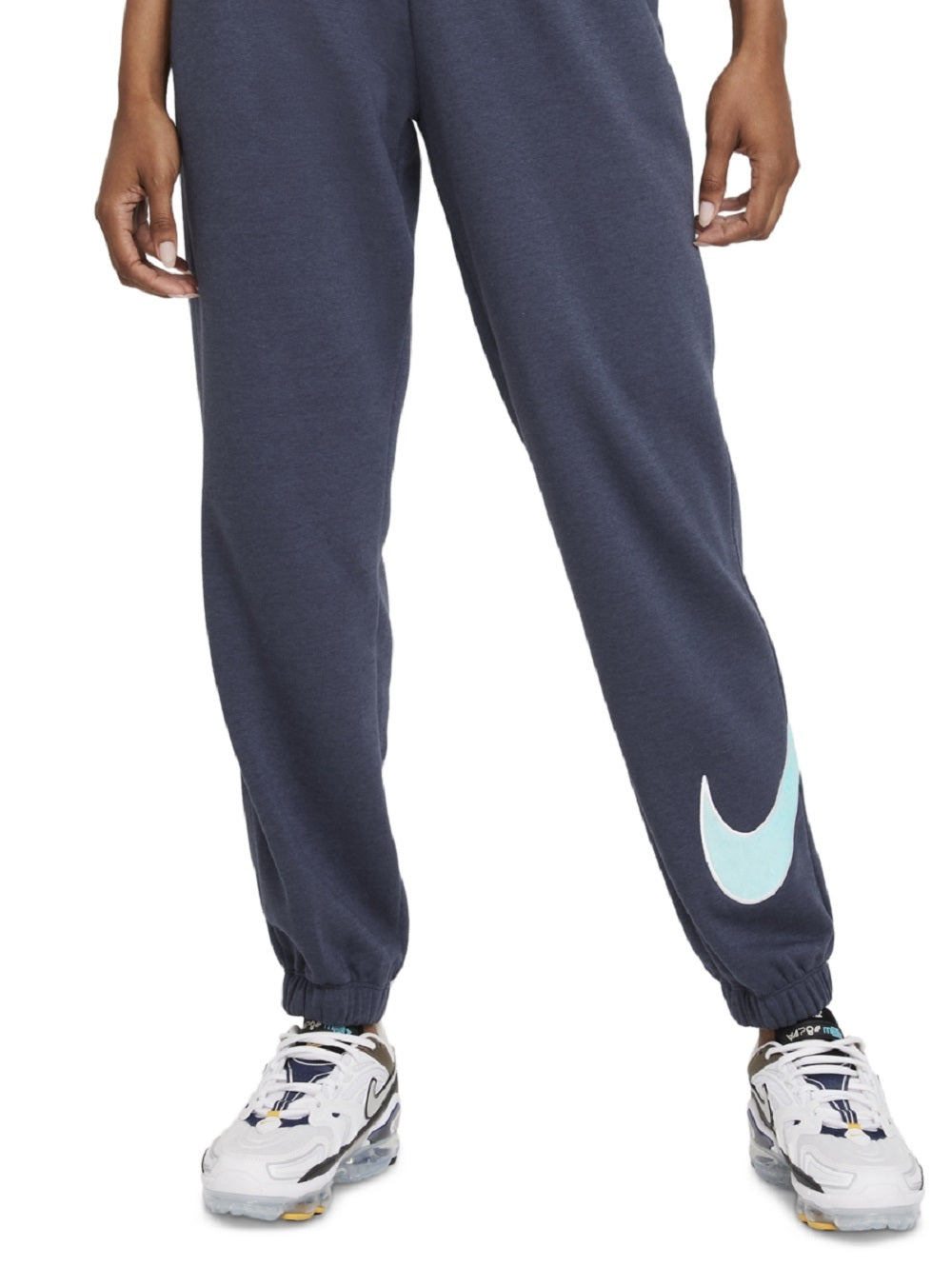 The Sportswear Easy Fleece Joggers are a style made with a French terry fabric. The iridescent crushed velvet appliqué Swoosh on the lower leg accents the fabric on the elastic waistband.| Mid-rise; approx. inseam; 30| Pull-on style; drawstring waistband; banded cuffs; swoosh graphic at leg; side pockets| Cotton/rayon/polyester; pocket bags; cotton/rayon| Machine washable| Imported