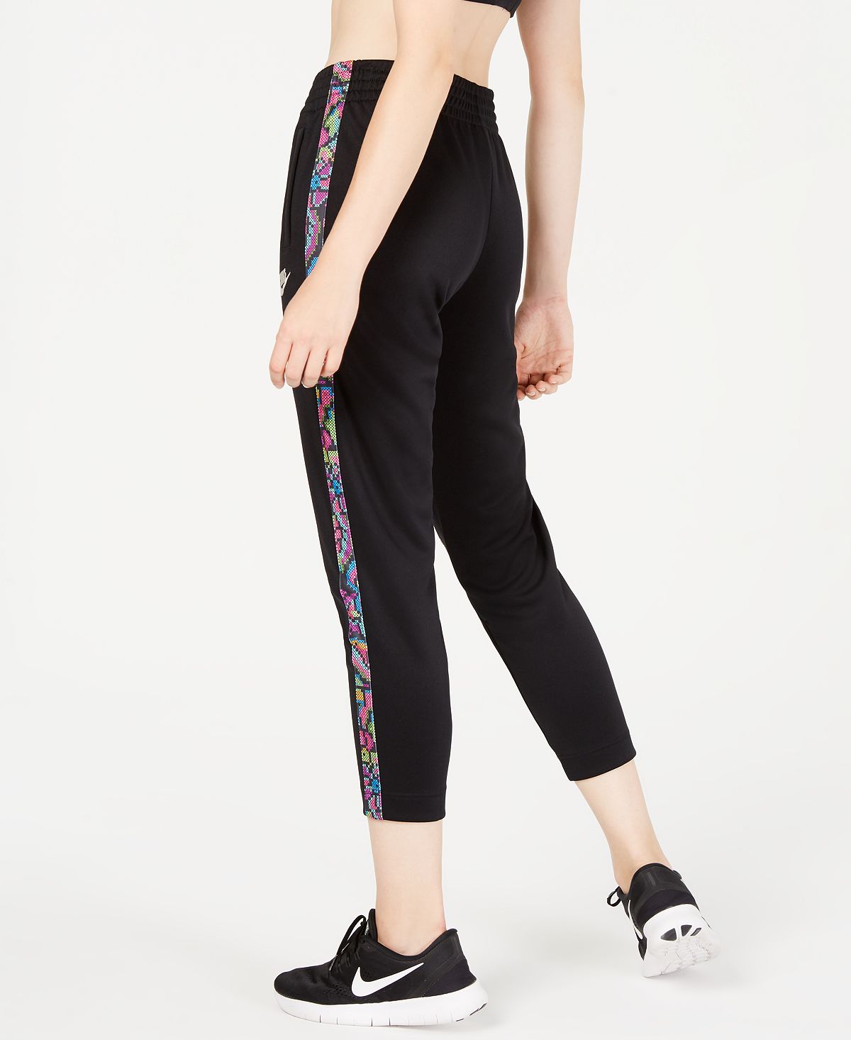 A brilliant tapestry brings stylish color to these Sportswear pants. Pin tucks at the front polish the high-rise silhouette.| High rise; approx. inseam; 27| INSPIRED FOR; Athleisure| Elastic waistband with adjustable fit; on-seam pockets at sides; pin tucks at front; printed panels at sides| Polyester| Machine washable