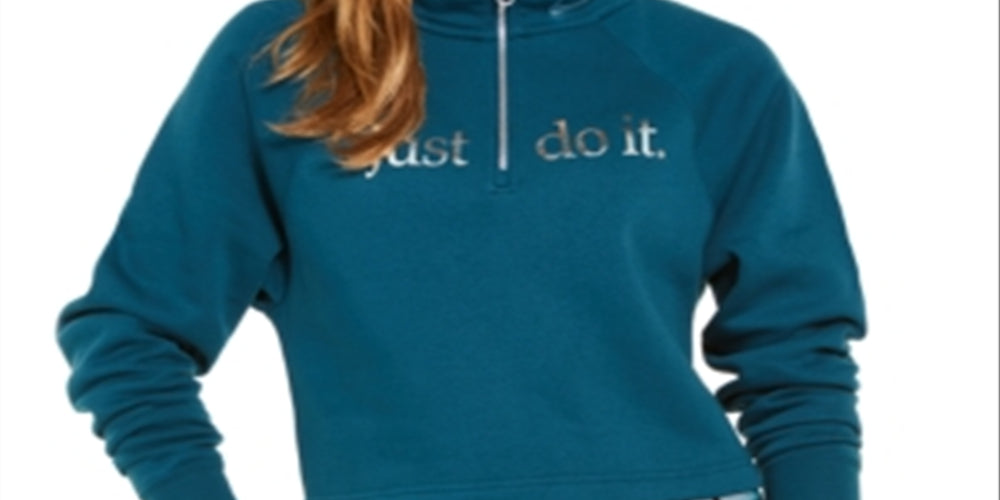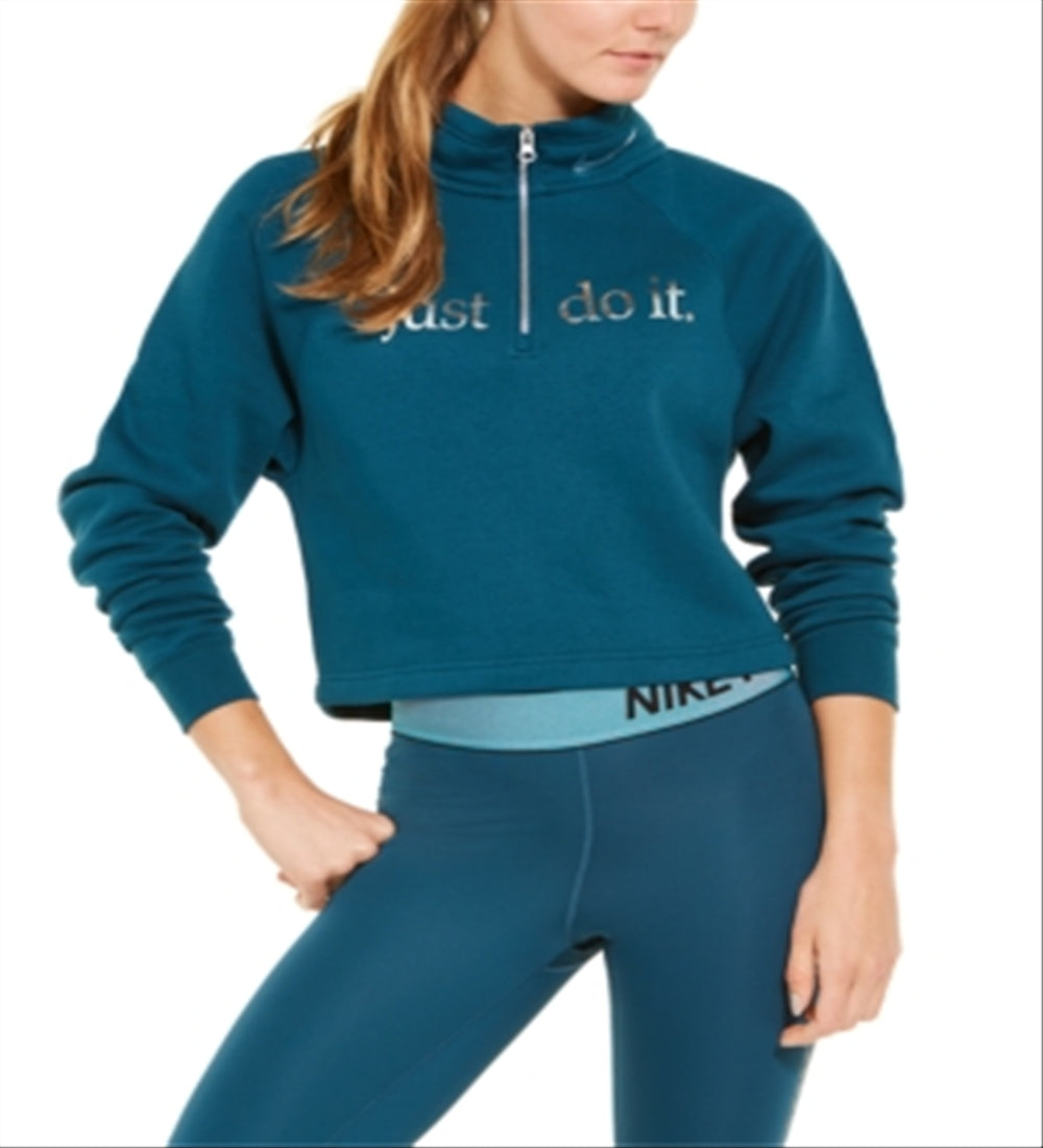 Nike Women's Sportswear Shine Metallic Graphic Half Zip Top Green Size X-Small
