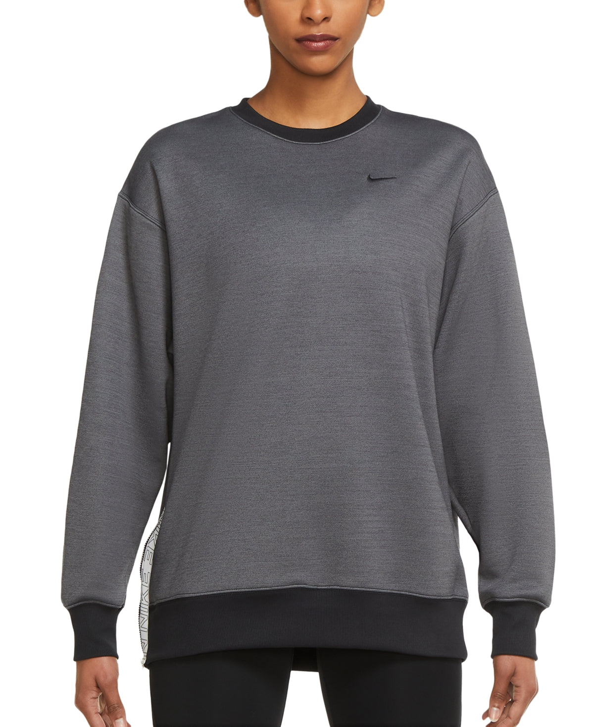 Warm and dry fine perfect balance in this training top. The Therma-FIT fleece helps manage body heat to keep you training in comfort.| Loose fit| Therma-FIT fleece with wicking technology helps evaporate moisture; zipper at side for adjustable breathability| Crewneck; hidden pocket; logo at front; ribbed cuffs and hem| Polyester/spandex| Machine washable| Imported