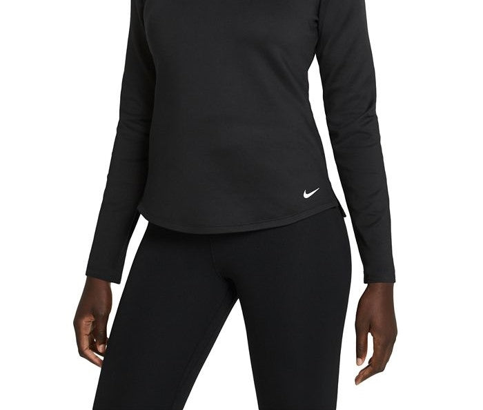Stay warm no matter which way you move in this Nike top. Therma-FIT fabric helps manage your body heat to keep you cozy and dry| while high-stretch fabric unlocks mobility.| Curved back hem enhances coverage| High-stretch Therma-FIT fleece with wicking technology helps evaporate moisture?| Crewneck; logo at front; vents at sides with subtle bar-tack detail| Polyester| Machine washable