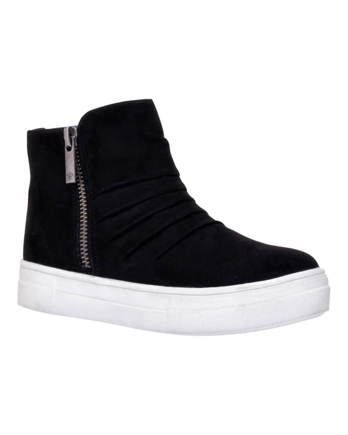 Kick off the fall season in this effortlessly cool NINA Amanda high-top sneaker. With a relaxed slouch detail and a convenient metal zipper for easy wear, this style is perfect for pairing with all her outfits. To keep it looking great, remember to spot clean it regularly.
