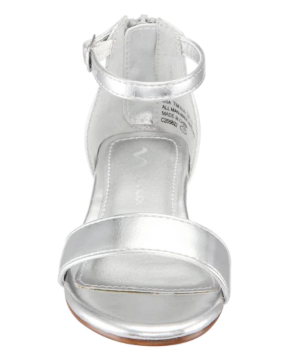 Introducing the Nina Girl's Hidi Dress Sandals in a chic silver hue, perfect for little fashionistas. These sandals feature a stylish block heel with a height of 1.25 inches and are crafted with a 100% man-made upper and lining. They offer a medium shoe width with a peep toe design, adding a touch of elegance to any outfit. Care for them effortlessly by spot cleaning with a damp cloth.