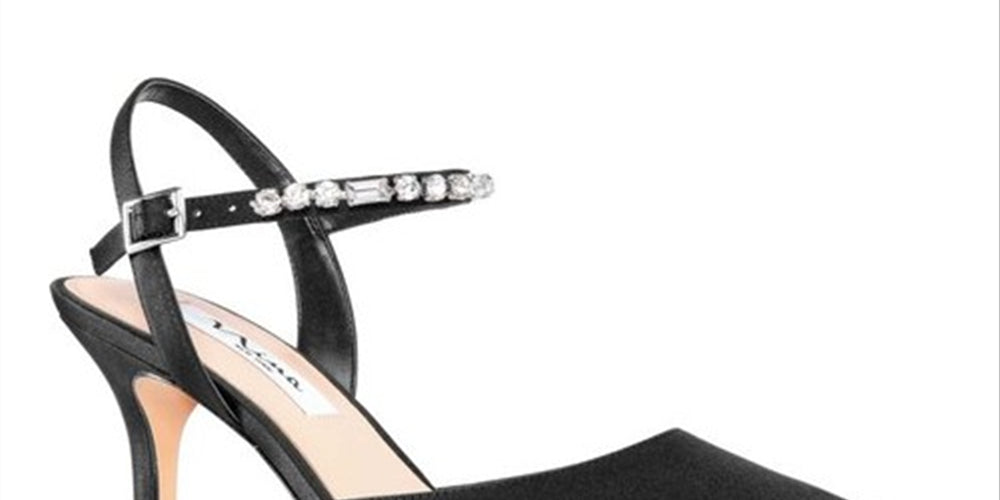 Closed-toe classic pump | Delicate rhinestone strap| A mid-height heel and an adjustable ankle strap make for a secure fit