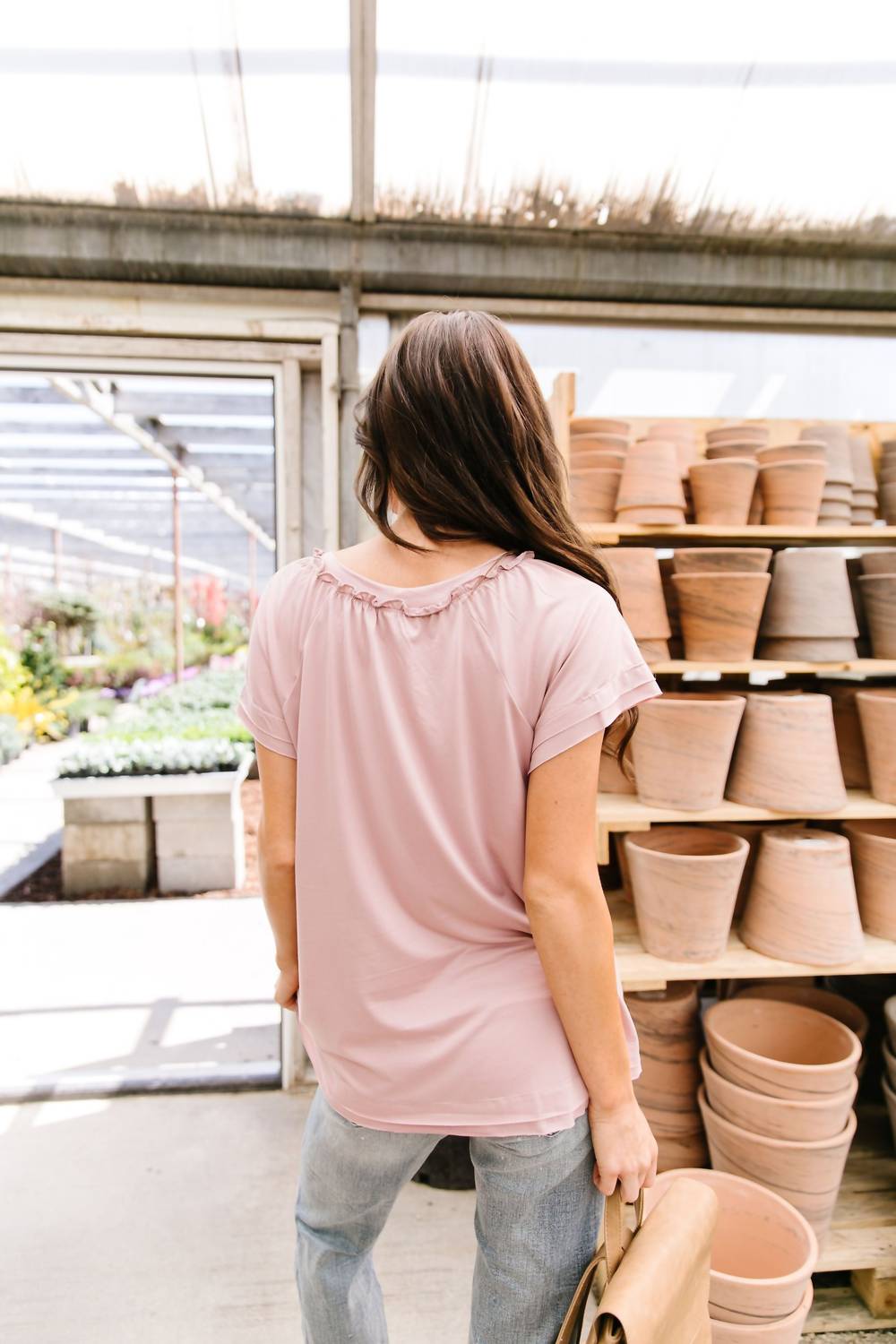 The short sleeve tee you'll want in every color.Featuring Ruffled neckline and double raw-edged sleeves. SoftStretchyMedium WeightFits True To SizeSmall: Chest 40" Length 26.5"Medium: Chest 42" Length 27"Large: Chest 44" Length 27.5"XL: Chest 46" Length 28"1XL: Chest 48" Length 29"2XL: Chest 50" Length 29.5"3XL: Chest 52" Length 30"Model Alexis is 5' 8" and Wearing Size SmallModel's Measurements: Chest 34", Waist 23", Hips 33"