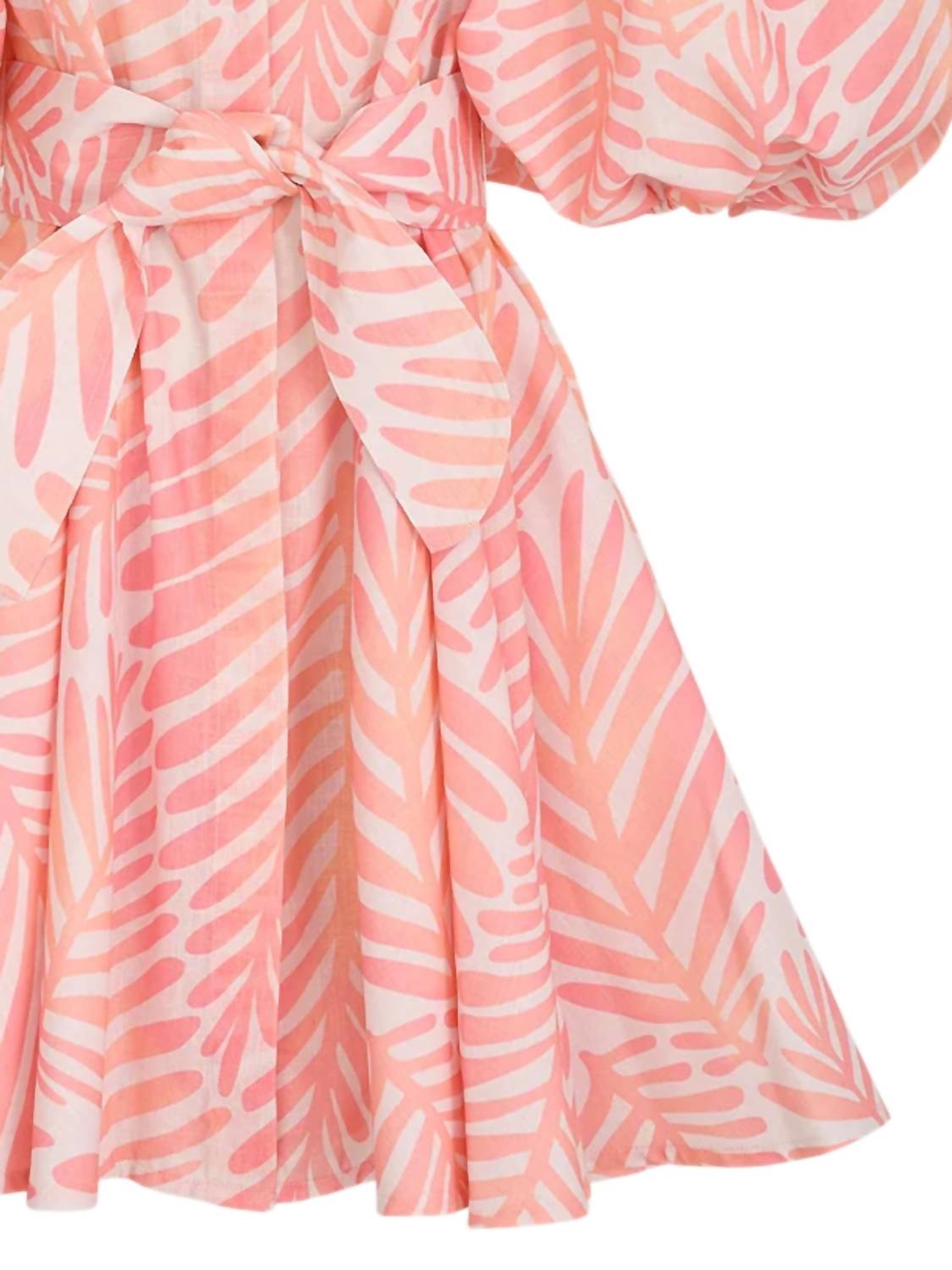 The perfect mini dress for those warmer months. Step into elegance with the Bromelia Mini Dress by No Pise La Grama, a stunning choice in peach coral print. This dress features short puff sleeves and a flattering mini length with fit and flare silhouette. Designed with a button-down front and waist tie, it offers a sophisticated mandarin collar that makes a statement. Perfect for a spring dinner party or New Year's Eve celebration, this piece embodies quiet luxury.