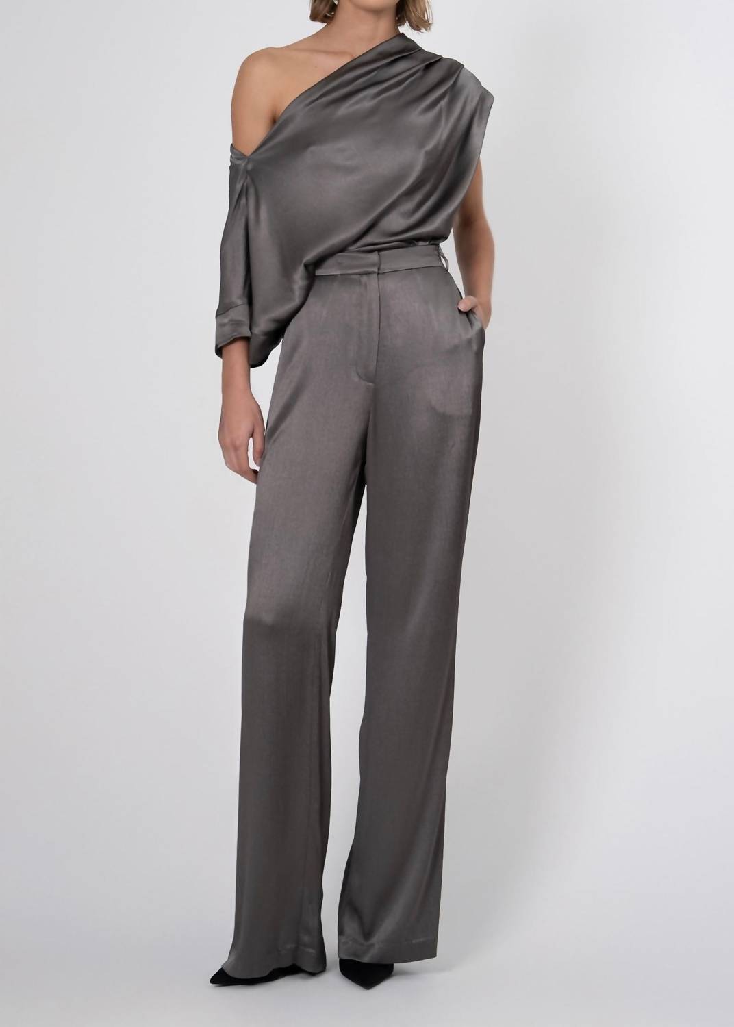 This straightleg pant is both stylish and comfortable. Did we mention the fit is perfection? Introducing the Pauline Straight Leg Pants by Nonchalant Label, a striking addition to your fall wardrobe. These high-rise pants in a sophisticated slate shade feature a sleek straight-leg silhouette and textured design, complemented by a relaxed fit for comfort. Crafted with a convenient hook and eye closure, they include functional pockets, perfect for a dinner party or New Year's Eve celebration. Care: Dry clean only. Model wears size XS and fits true to size.