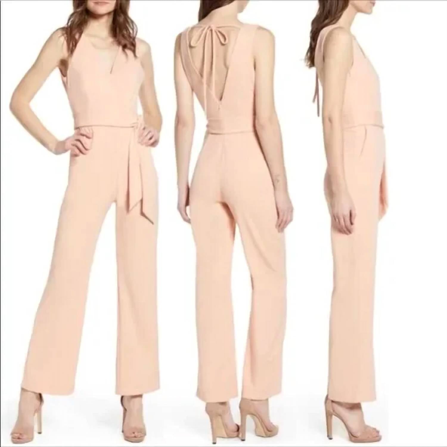 It doesn't take much for this one piece to look effortlessly cool. Add some statement jewelry to dress it up, or throw on some sneakers for a more casual vibe. This effortlessly chic jumpsuit is designed for both style and comfort, featuring a surplice V-neck, wide legs, and a flattering attached belt. It includes convenient side-seam pockets, a hidden back-zip closure, and ties behind the neck for added detail. Crafted from 100% polyester, it's easy to care for and perfect for everything from boho brunches to date nights.