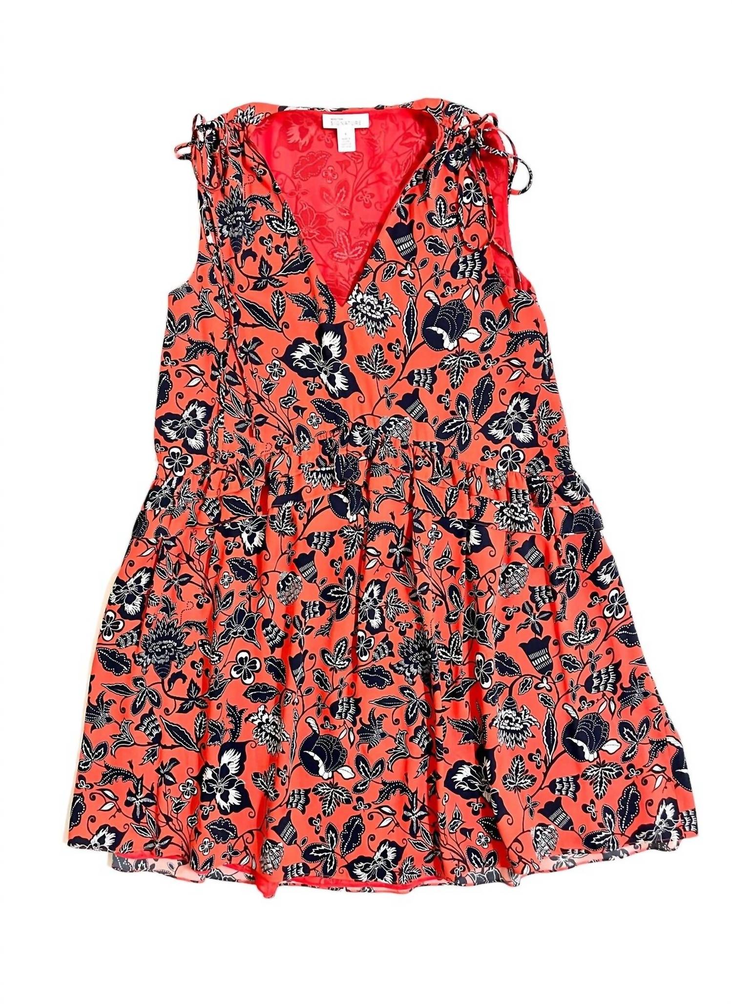 The kind of easy and flattering dress you'll be reaching for all season long. The Signature Silk Floral Print V Neck Shift Dress by Nordstrom is an exquisite choice for any occasion. This sleeveless mini dress features an allover floral print in a vibrant red, highlighting its sophisticated and feminine appeal. Crafted from 100% silk, it offers a luxurious feel and elegant drape, with a length ranging from 35" to 36.5". The dress silhouette is complemented by a double ruffle at the waistline and a high-low hem, while the absence of closures ensures a seamless design. Note: Dry clean only.