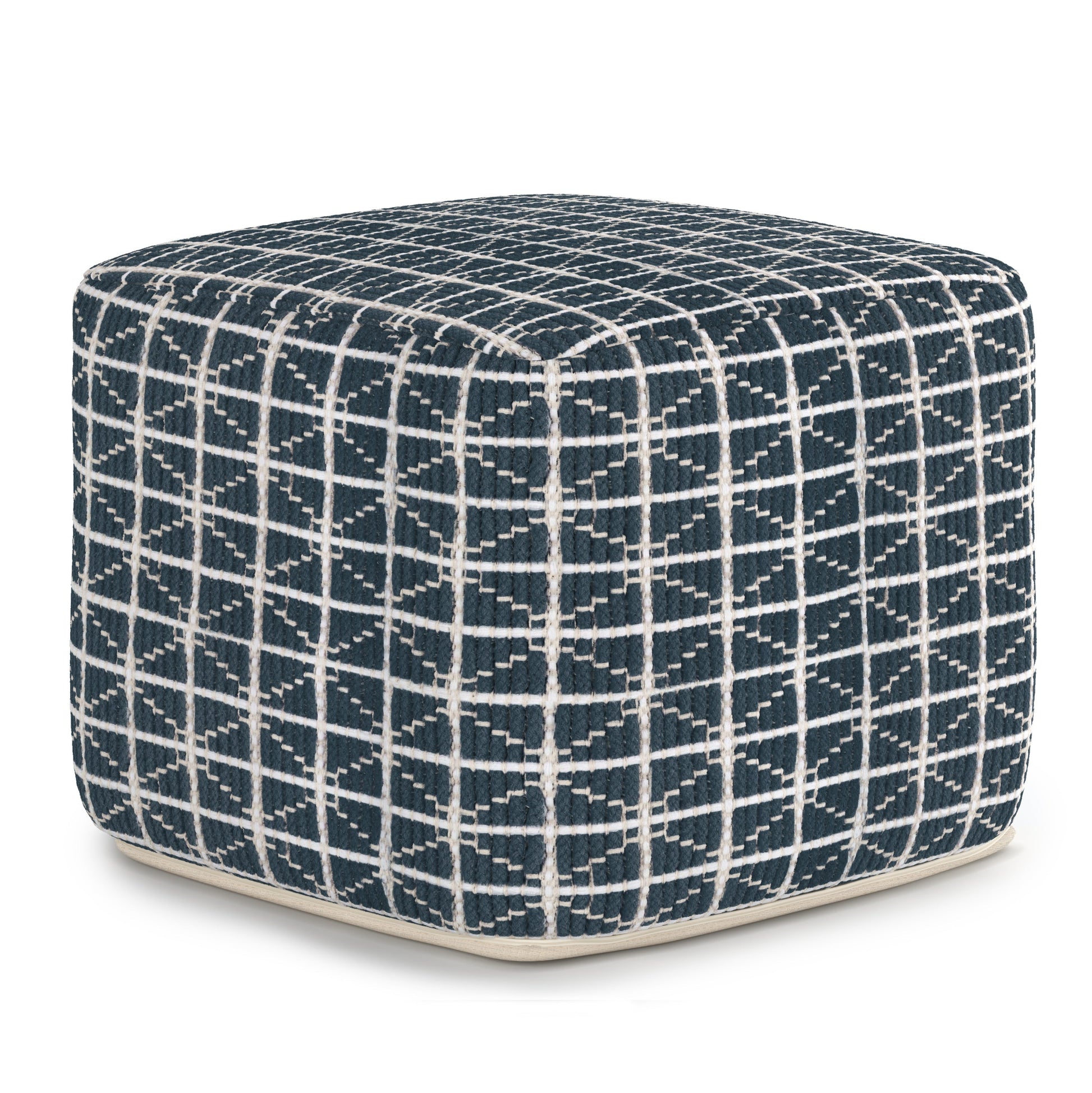 Noreen Square Pouf - Dark Blue / White