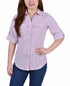 It's a fresh silhouette from NY Collection. Poplin body keeps it crisp while the rib sides makes it comfortable.| Imported| This item purchased online must be returned to the vendor by mail only. This item cannot be returned to stores.| 3/4 roll tab sleeves| Chest pockets| Point collar| Rounded hemline
