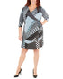 NY Collection Women's Patchwork Tie Front Wrap Dress Black Size 3X