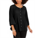 NY Collection Women's Pleated Button-Front Bell-Sleeve Top Black Size Petite XL