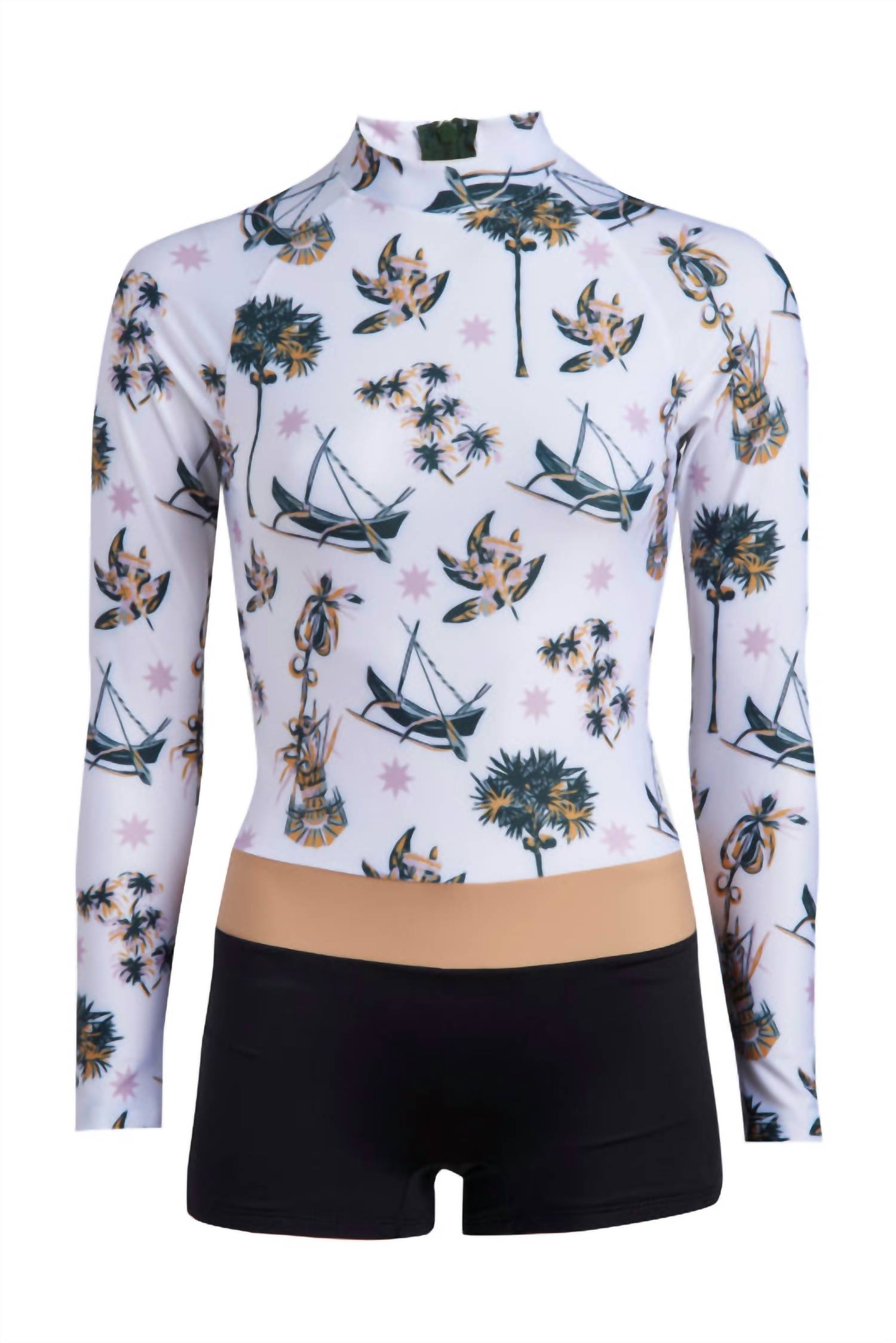 A one piece so chic you could even wear it as a bodysuit with your favorite pair of jeans.78% Polyamide (Recycled) & 22 % Elastane (Italian Imported). The Lauren wetsuit is designed for the active woman. Long sleeves for UV protection, 50 SPF, also serves as a rash guard when surfing. Sizing: This suit runs a size small. We suggest sizing up. Rinse in cold water after wearing to remove some chlorine, saltwater, sunscreen and/or natural body oils. Hand-wash.