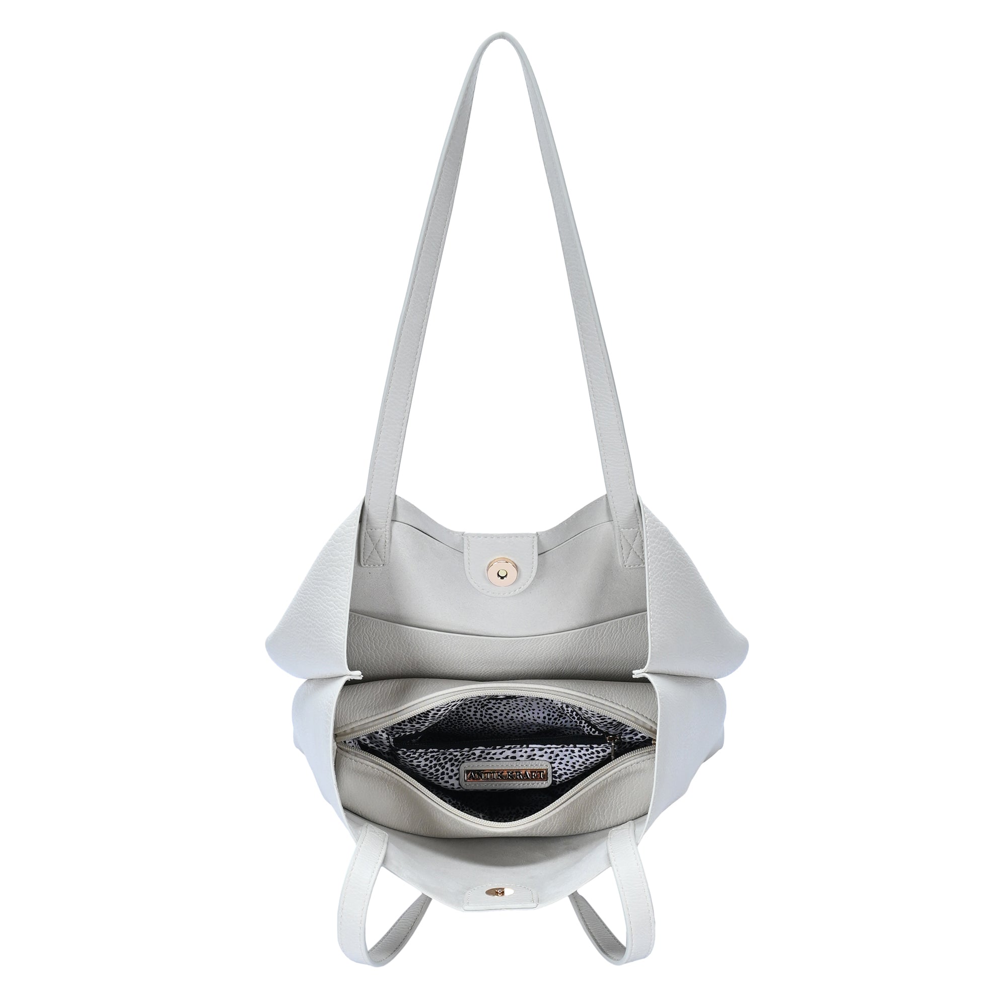 Minimalists, jump for joy! The Olivia tote makes it so you'll never have to leave anything behind. Its removable pouch has a reliable zipper plus an inner slip pocket for your phone, keys, and more. Plus, it can store up to a 13" laptop! What more could you ask for?!
