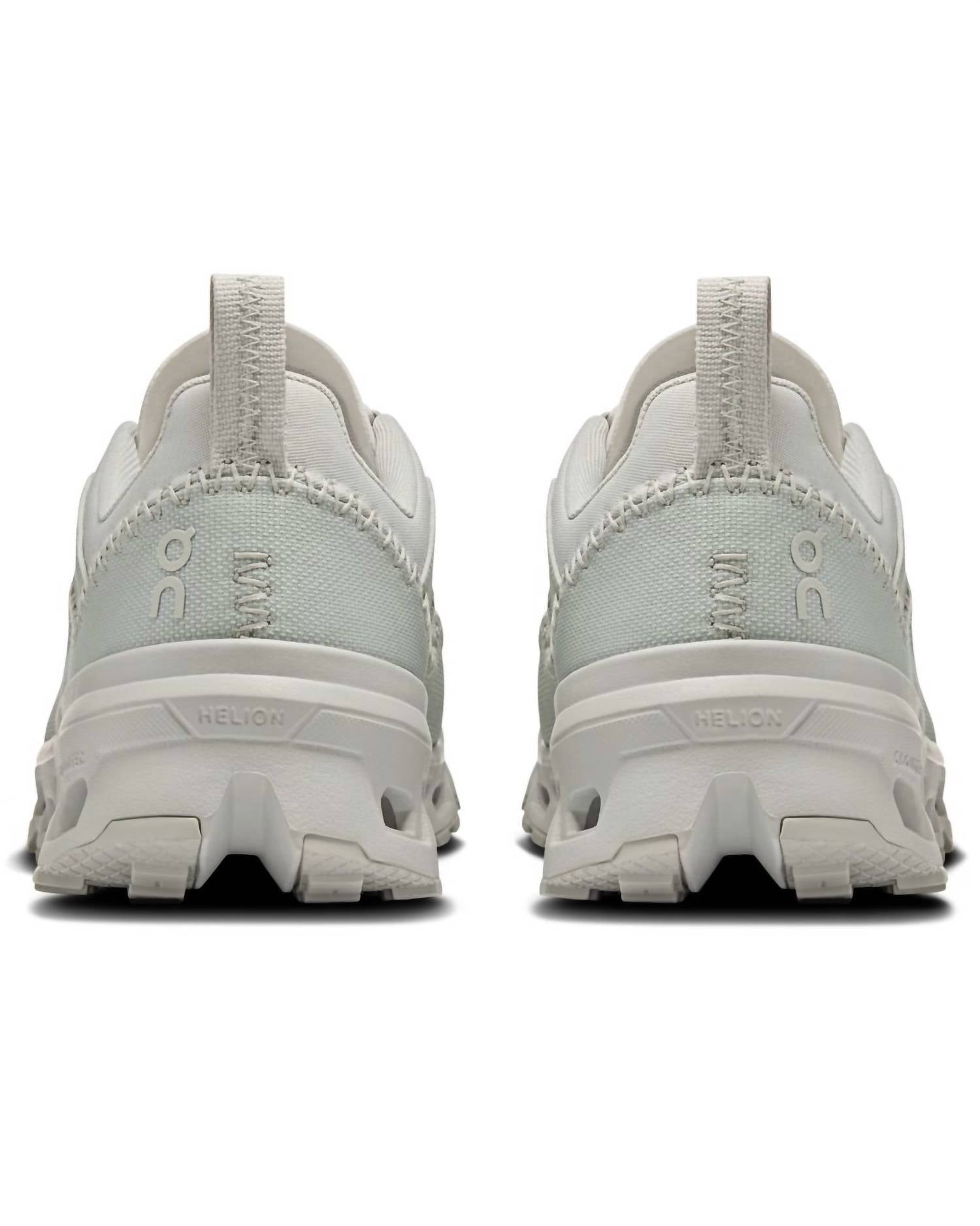 Introducing the Men's Cloudaway 2 Sneakers by On Cloud, a versatile footwear option designed for both urban and rugged terrains in the chic Glacier/glacier color. These sneakers feature a lightweight mesh upper made from over 90% recycled content, ensuring breathability and durability while maintaining a conscious footprint. The CloudTec sole and closed midsole provide long-lasting comfort and protection, complemented by a 10% recycled rubber outsole with 3D tread inspired by the Engadin Valley. With a round toe shape, flat heel style, and convenient single toggle lacing closure, these sneakers are your go-to for flexible, eco-friendly adventures.