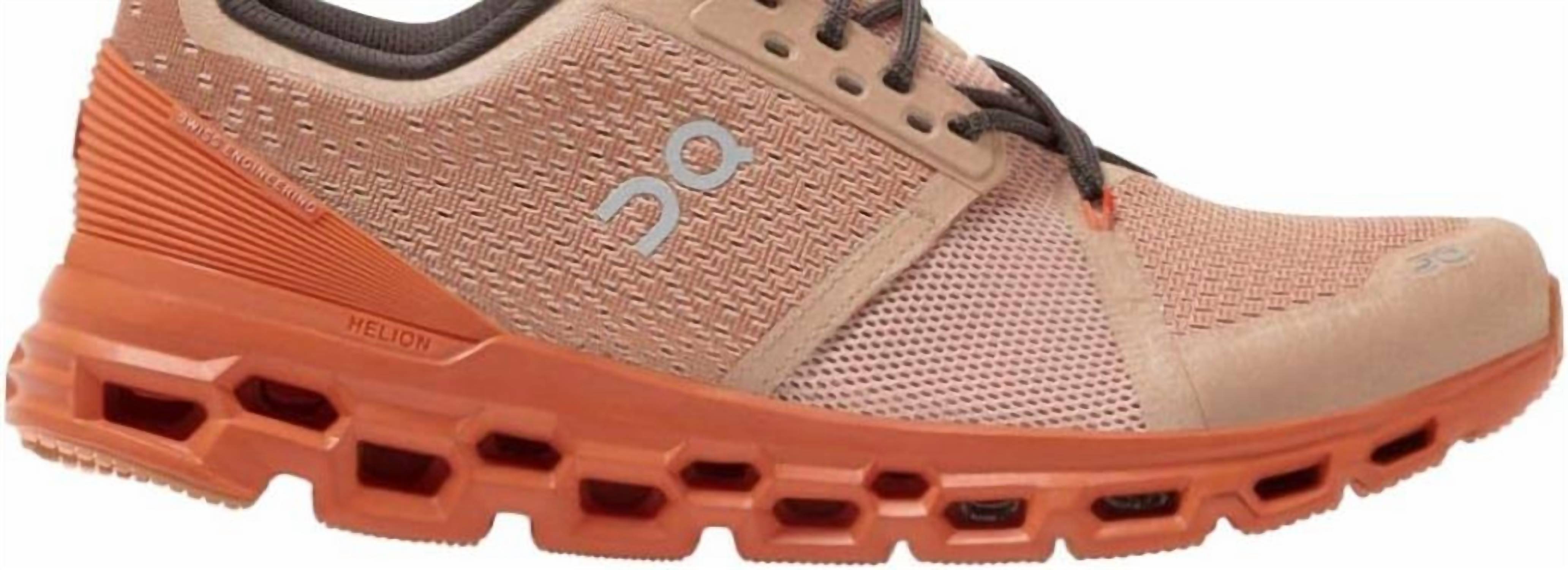 When fashion and function come together seamlessly. Step up your fitness routine with the ON Women's Cloudstratus Sneaker in Rosebrown/Flare, designed for athleisure enthusiasts. These sneakers feature a synthetic mesh upper paired with a durable rubber outsole, perfect for improved traction during your workouts. With a supportive athletic style and round toe design, they're ideal for running, jogging, or walking. Complete with a lace-up closure, these sneakers combine style and functionality for your fall workout wardrobe.