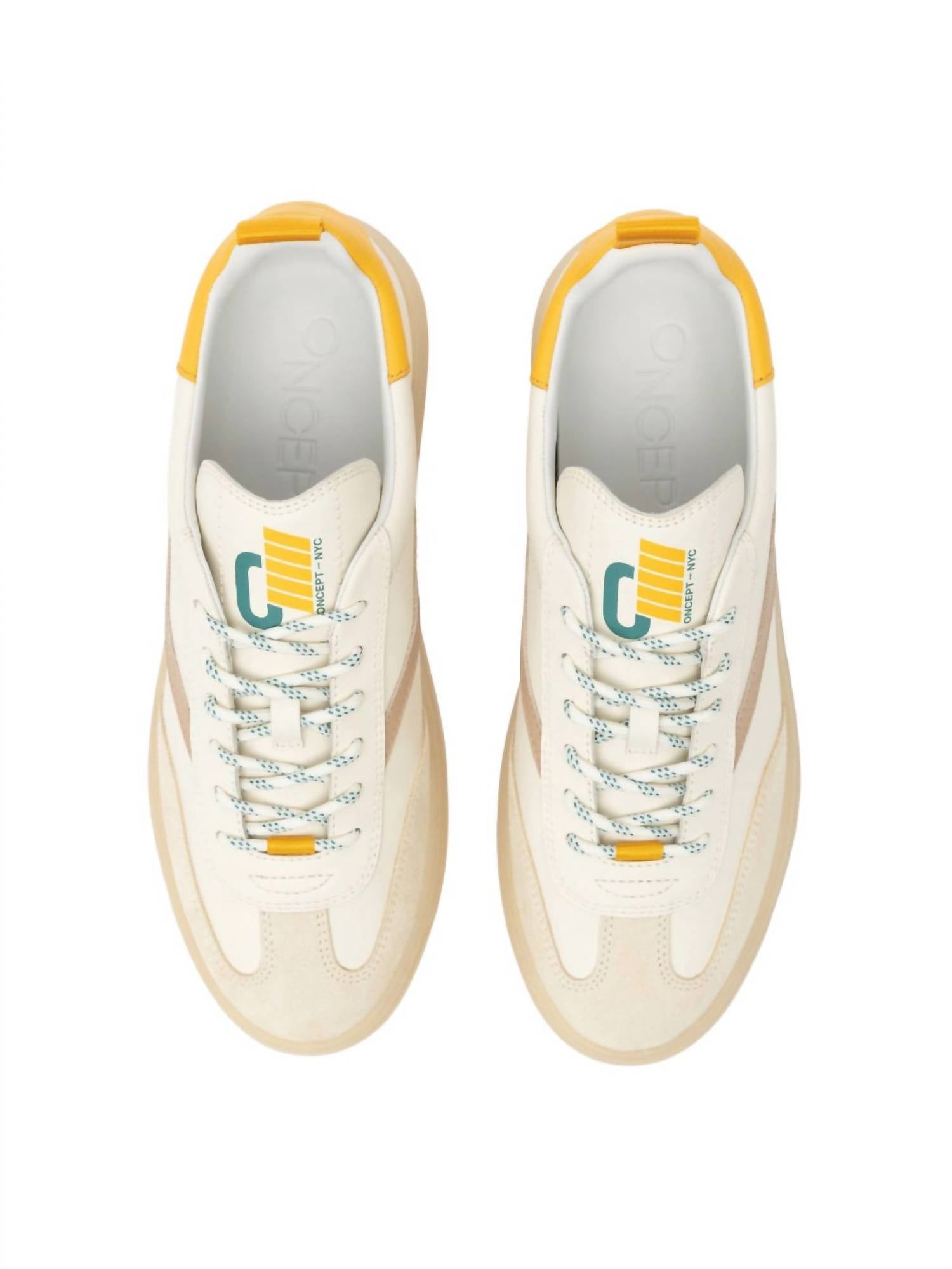 Step into style with the Women's Panama Sneaker Shoes by Oncept, a fresh addition in a chic vanilla hue. Featuring a round toe and flat heel with a height of under 1 inch, these sneakers are perfect for spring streetwear and back-to-school occasions. Designed for women, these sleek sneakers blend seamlessly into any wardrobe. Originating from Oncept, they offer a trendy staple for the adult woman's collection.