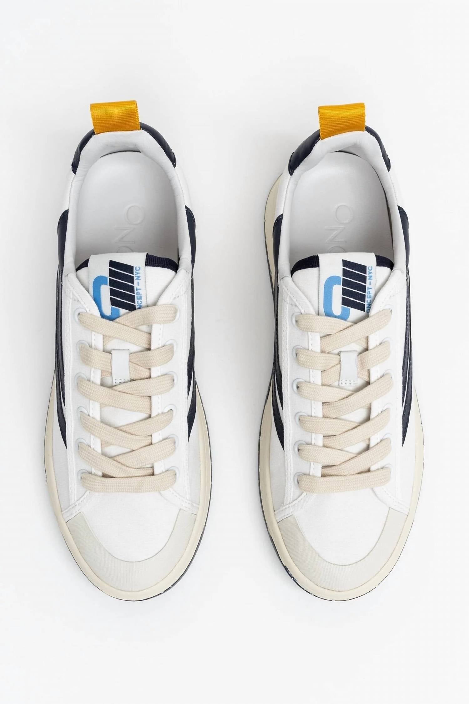 Get your daily steps in with these adorable sneakers. Step into vintage-inspired style with the Oncept Portland Sneaker, a perfect blend of classic and contemporary design. Crafted with recycled canvas uppers and leather trim, these low-profile sneakers feature side stripes and a signature Re-speckled sole for a distinct look. The sneakers include Tencel twill lining and a bio-density molded footbed, ensuring comfort with every step. Closure: Lace-up with a convenient pull tab. Material: Canvas, leather, and rubber. Origin: Imported. Available in an elegant indigo color, these sneakers are a must-have addition to your collection.