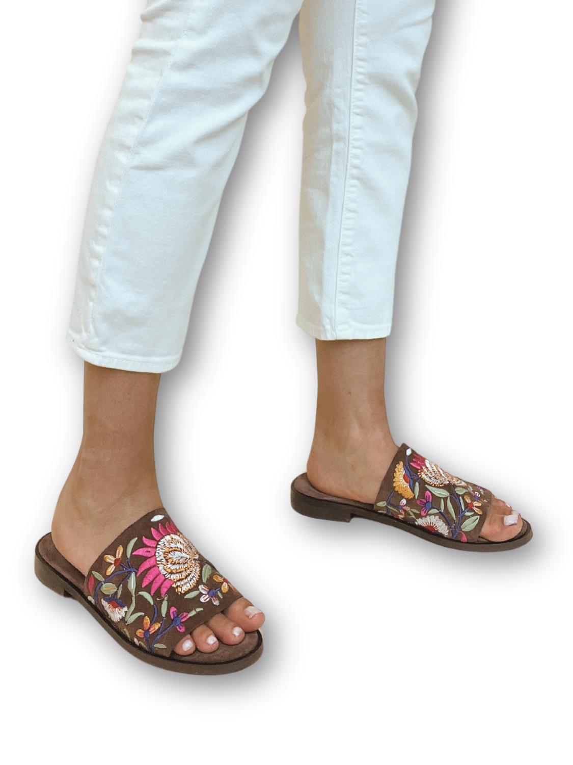 Slip them on and go! Step into elegance with this embroidered suede leather mule, designed for both comfort and style. Crafted from high-quality suede leather, it features intricate multicolor floral embroidery that adds a unique and sophisticated touch. The cushioned footbed, also covered in soft suede, ensures all-day comfort, making it perfect for everyday wear. With a 100% leather upper, lining, and sock, along with a durable rubber outsole, this mule blends luxury craftsmanship with effortless style.