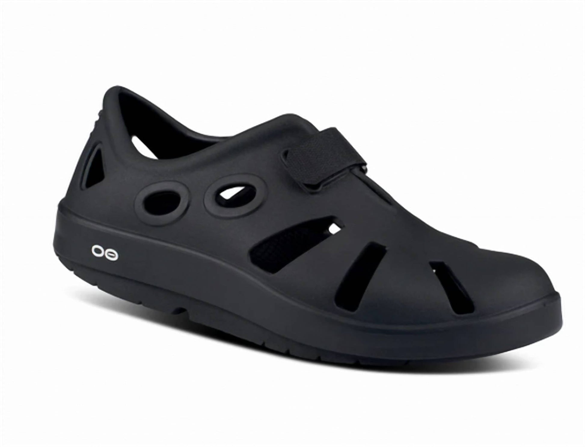 Meet the OOcandoo Recovery Shoes by OOFOS, designed for men who value comfort and versatility. In classic black, these shoes feature a medium width and round toe shape, perfect for various activities from creek crossings to urban explorations. The standout OOfoam™ technology and patented OOFOS footbed provide exceptional Active Recovery and an unparalleled OOfeel. Featuring a convenient hook and loop closure, these shoes promise a secure fit for every adventure.