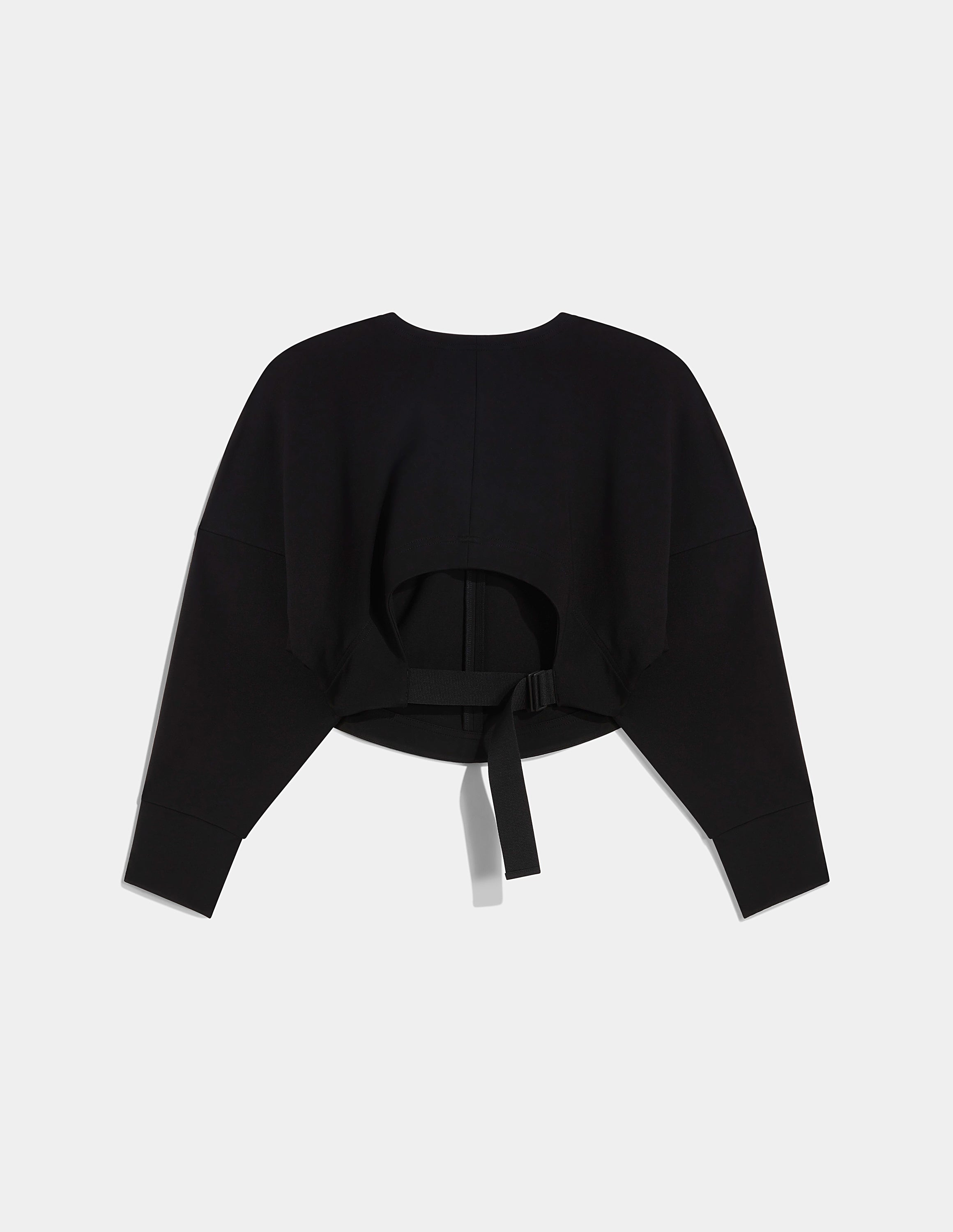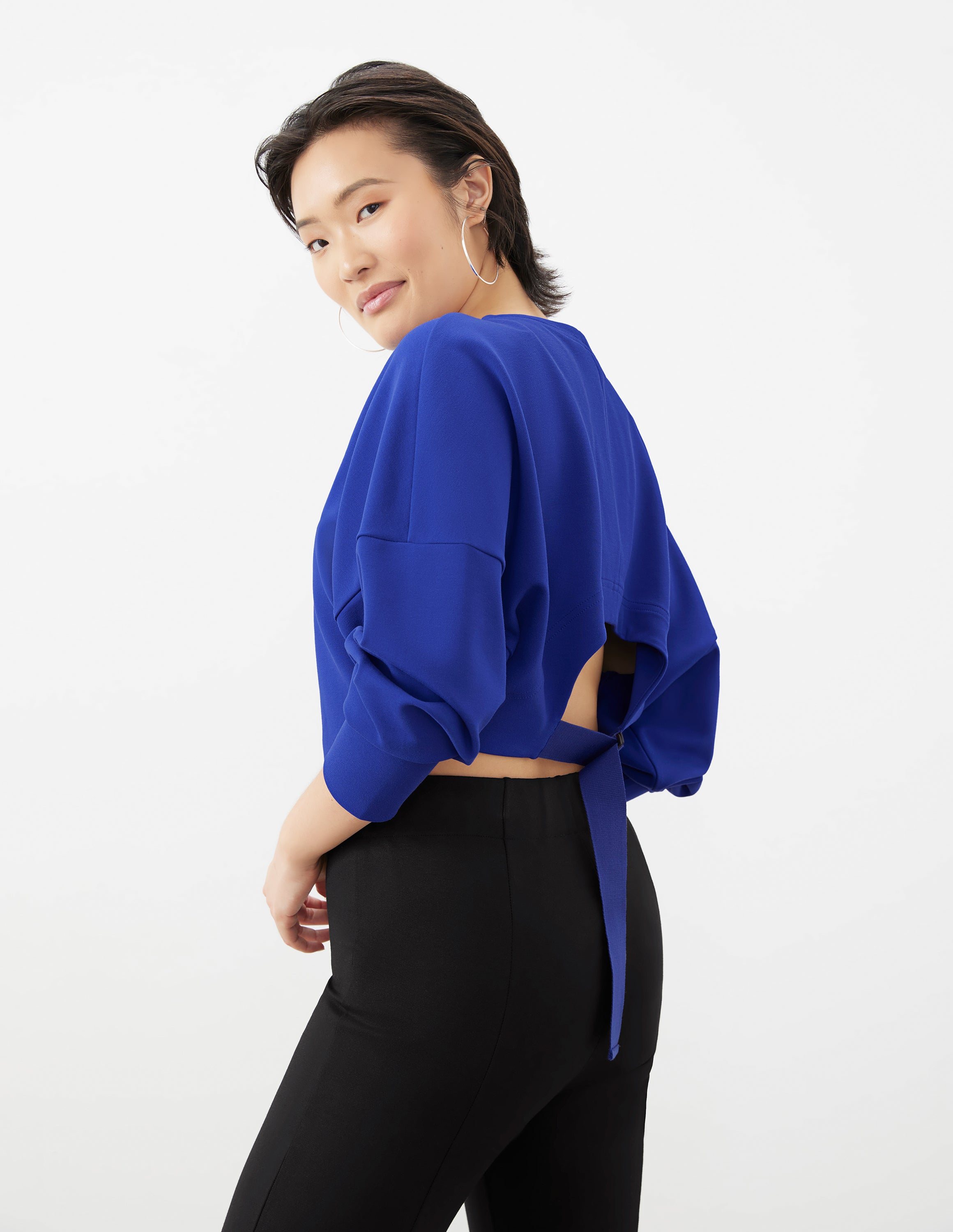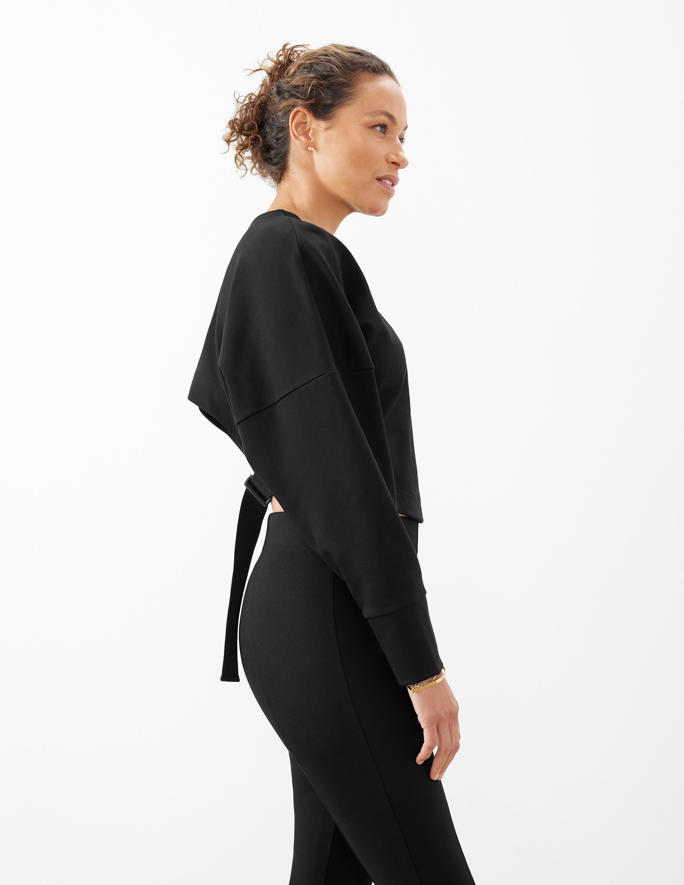 Cropped with an adjustable open back detail, this long sleeve top offers multiple styling options and fits true to size.