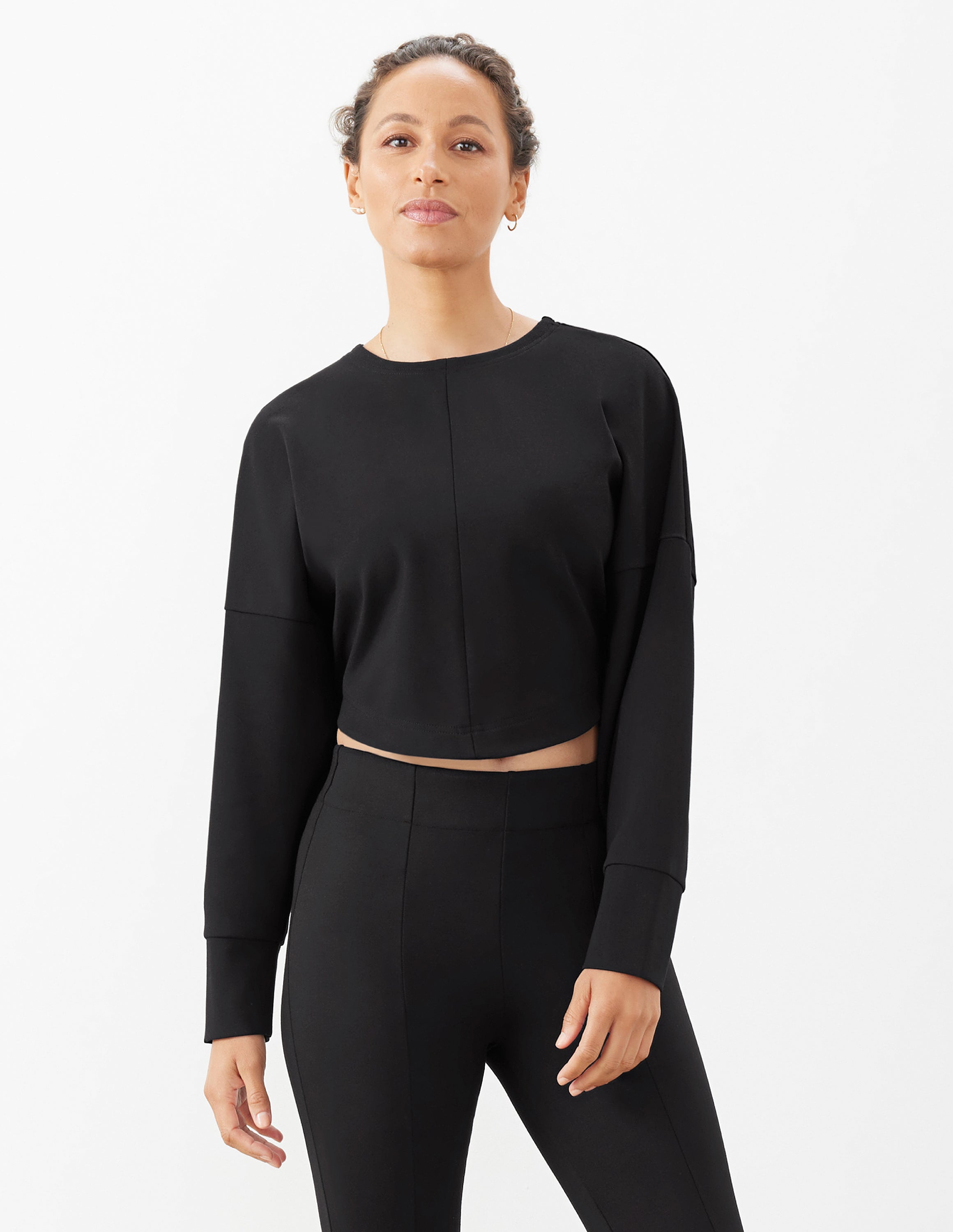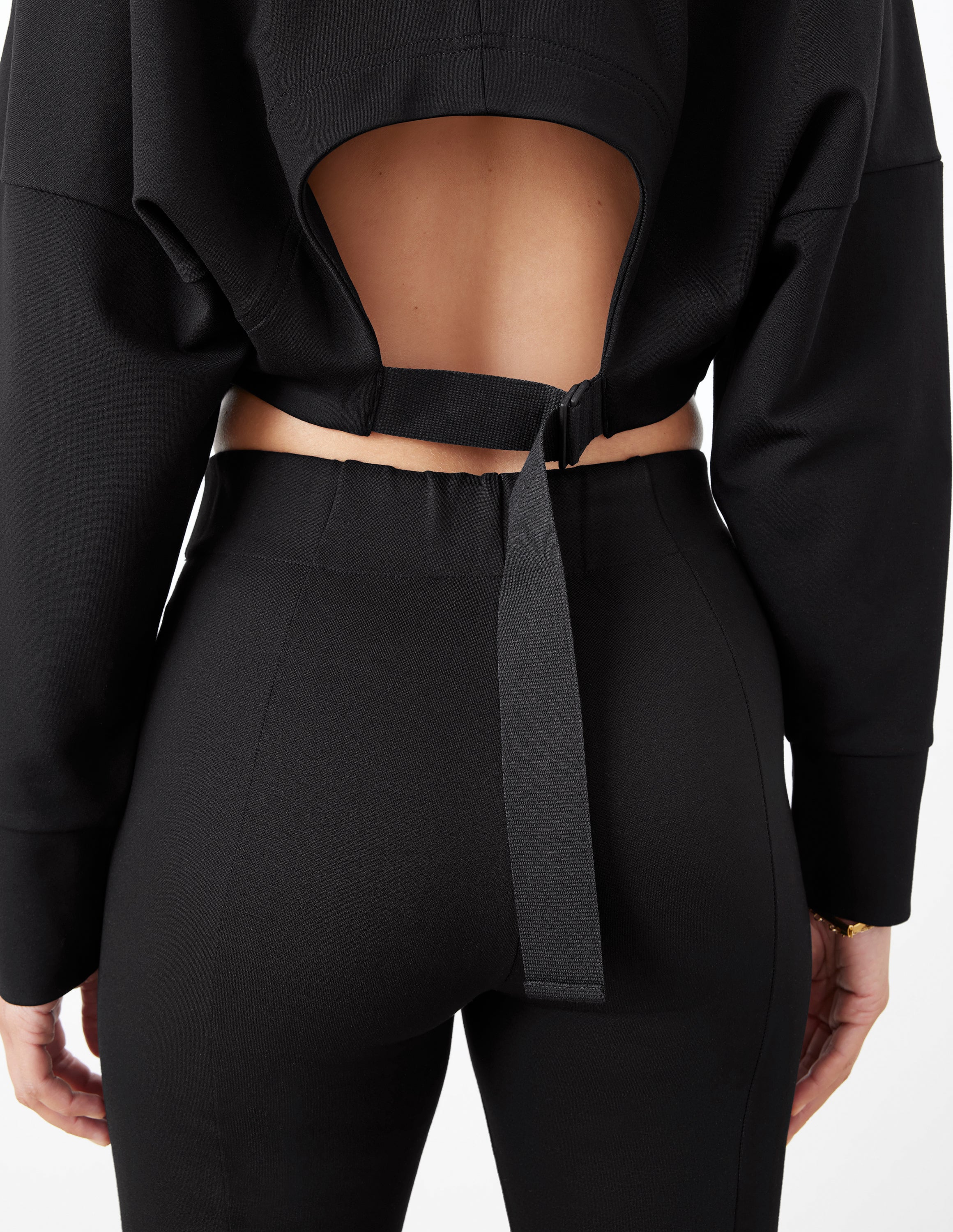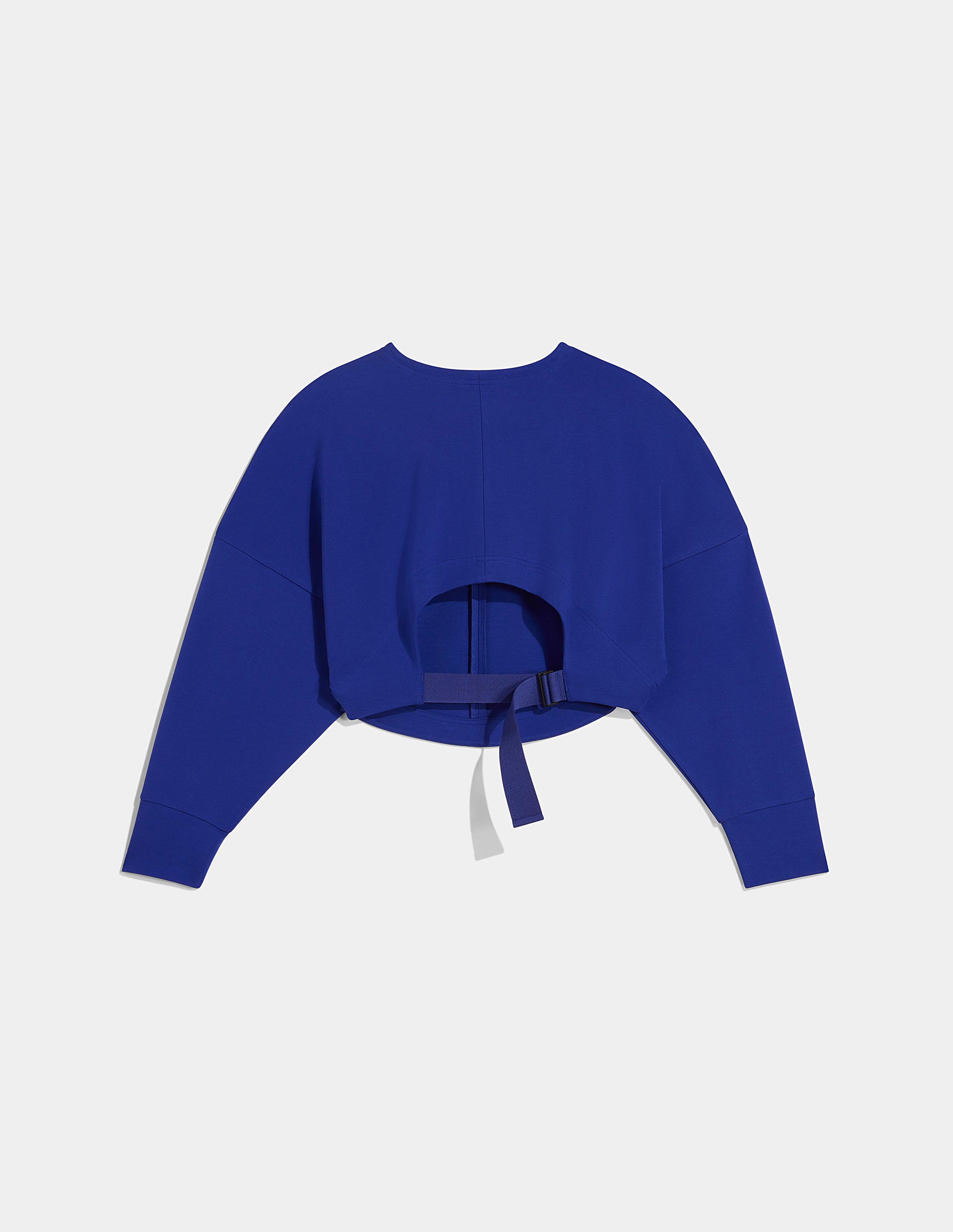 Cropped with an adjustable open back detail, this long sleeve top offers multiple styling options and fits true to size.
