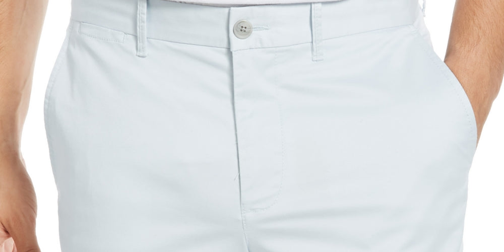 The refined slim fit and unrestrictive stretch twill of these chino shorts from Original Penguin make them a must-have for warm-weather style and comfort. | Approx. inseam; 8| Slim fit; slim taper through legs and thighs| Zip fly with button closure| Two side hand pockets; coin pocket at right waist; two back button-through welt pockets| Stretch performance| Tonal logo embroidery above right back pocket