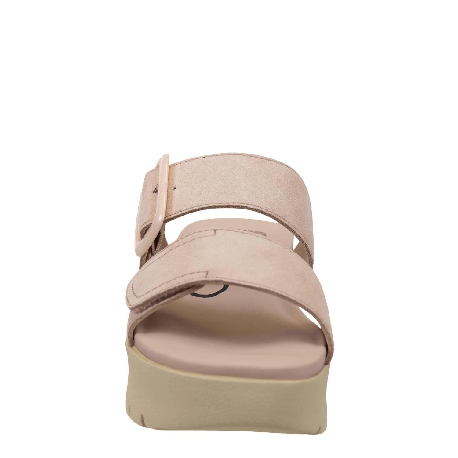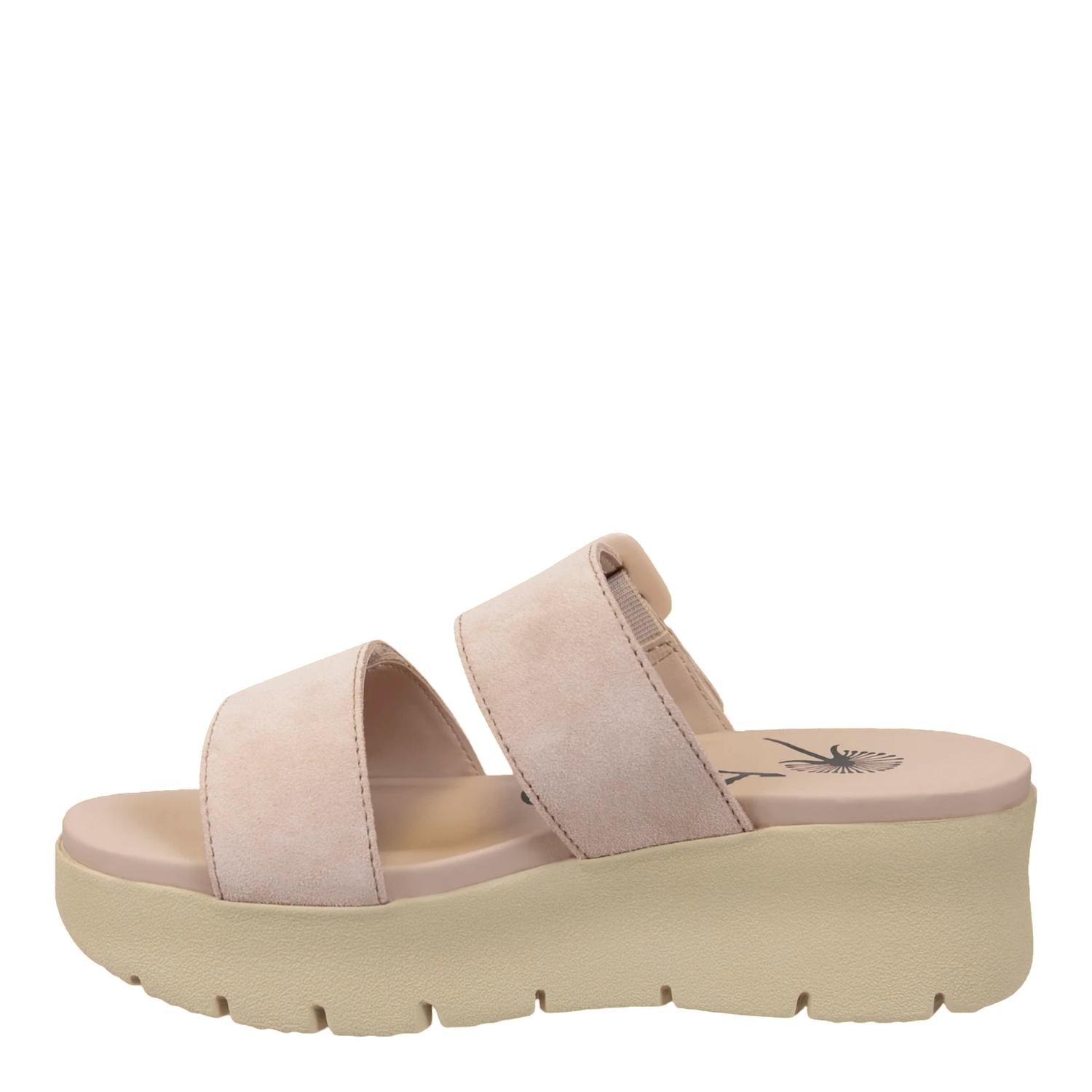 A trend that everyone is loving and this style might just be our favorite. Discover the OTBT Women's Cameo Platform Sandal, an essential summer staple in elegant beige. Featuring a crafted suede upper and lined with soft fabric for extra comfort, these sandals boast adjustable dual straps and an open toe for a minimalist yet chic look. The cork contoured footbed offers support while the Travel Lite® EVA sole ensures the platform's lightweight feel, with a heel height of 1.97". Closure is effortlessly handled by slip-on with adjustable straps, making them perfect for any holiday party occasion.
