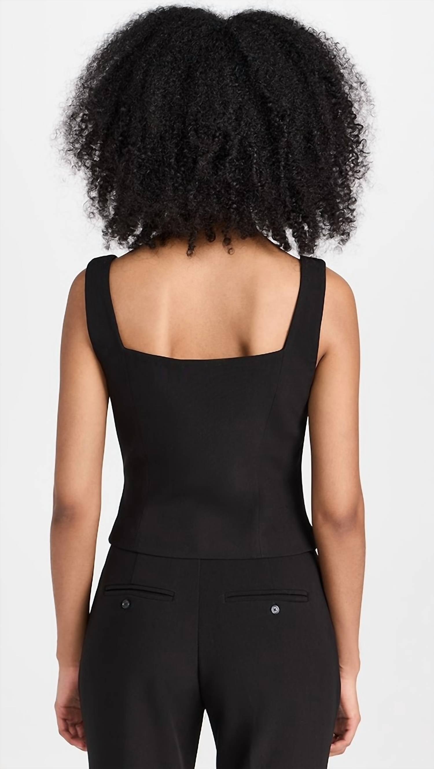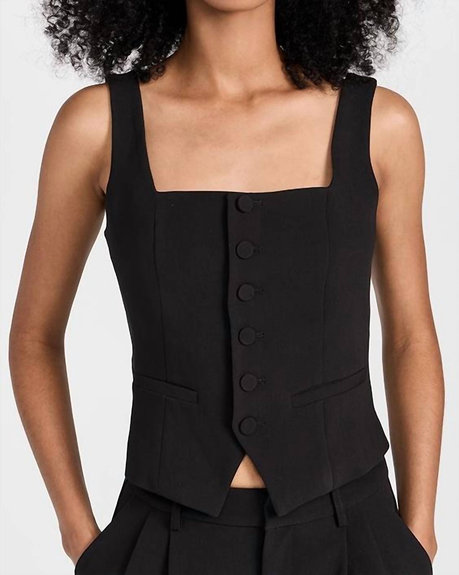 The perfect crop top for those warmer weather days. This women's crop top boasts a refined sleeveless design and a trendy squareneck for a modern look. Made from quality polyester, this piece is crafted in China with a convenient button closure. Care for this top with dry cleaning to maintain its polished appearance.