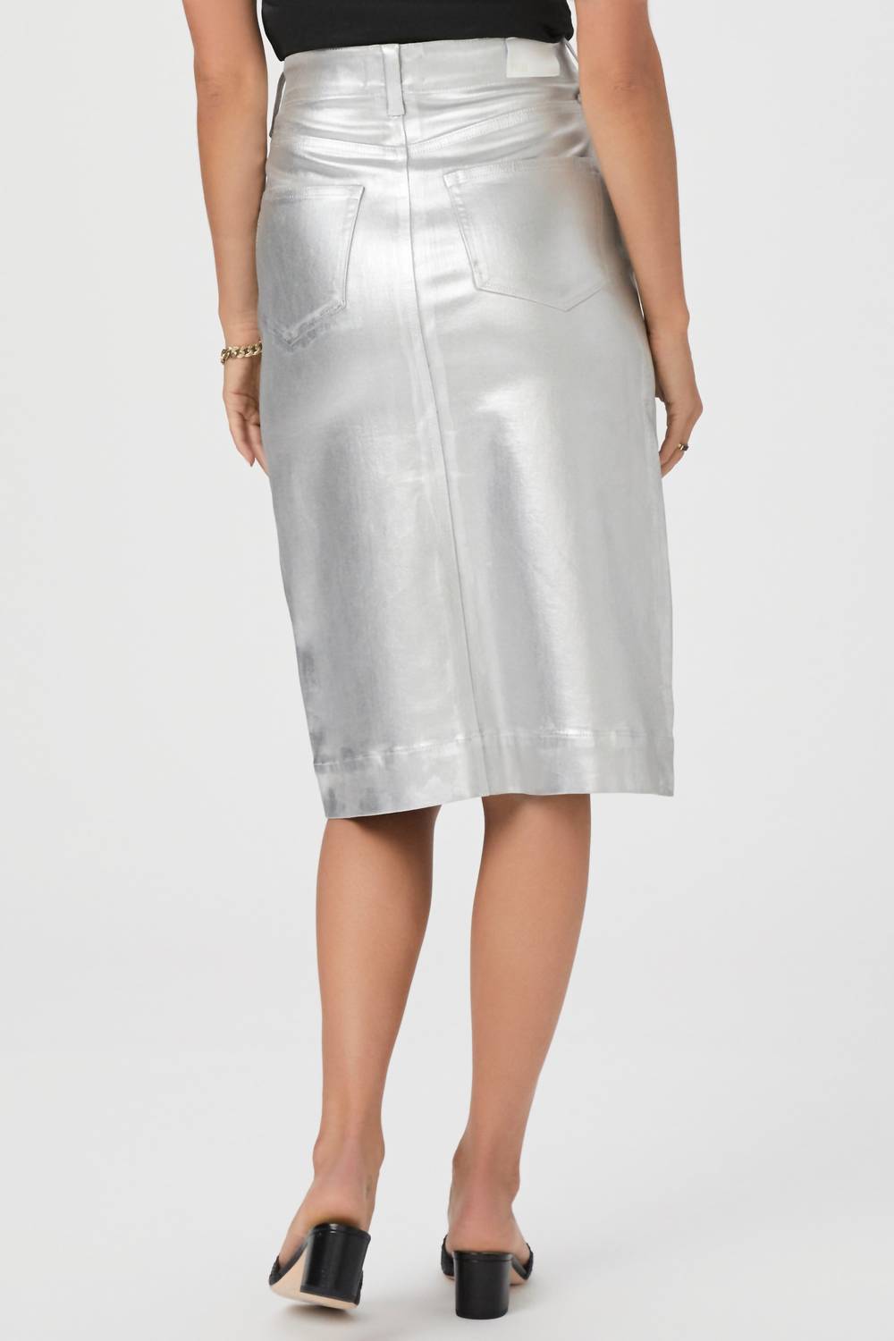 Show off just the right amount of skin in this beautifuly designed midi length skirt. Elevate your wardrobe with the Meadow Midi Skirt by Paige, embodying modern sophistication in Platinum Silver Coating. This solid-patterned skirt is crafted from a luxurious viscose blend, featuring practical Jolene pockets and a chic wide hem. Designed for women with a button closure, it's perfect for summer workwear, cocktail parties, and even a stylish 4th of July celebration. Care instructions include hand washing and line drying to maintain its pristine condition.