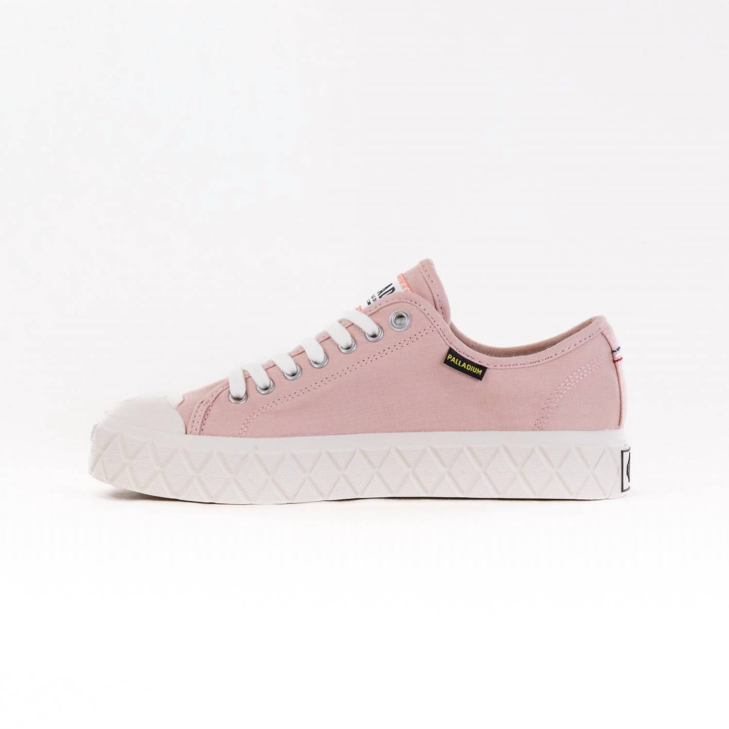 When fashion and function come together seamlessly. Step into sustainable style with the Women's Palla Ace Canvas Organic Sneakers by Palladium in elegant Nature Pink. These low-cut sneakers feature a 25mm flat heel for ultimate comfort and style. Crafted from 100% organic cotton with a robust rubber outsole, they offer durability and everyday ease. Closure: Lace-up. Ideal for the spring season, these sneakers embrace modern minimalist trends while reflecting Palladium's rich French heritage, highlighted by a tricolore flag on the side.