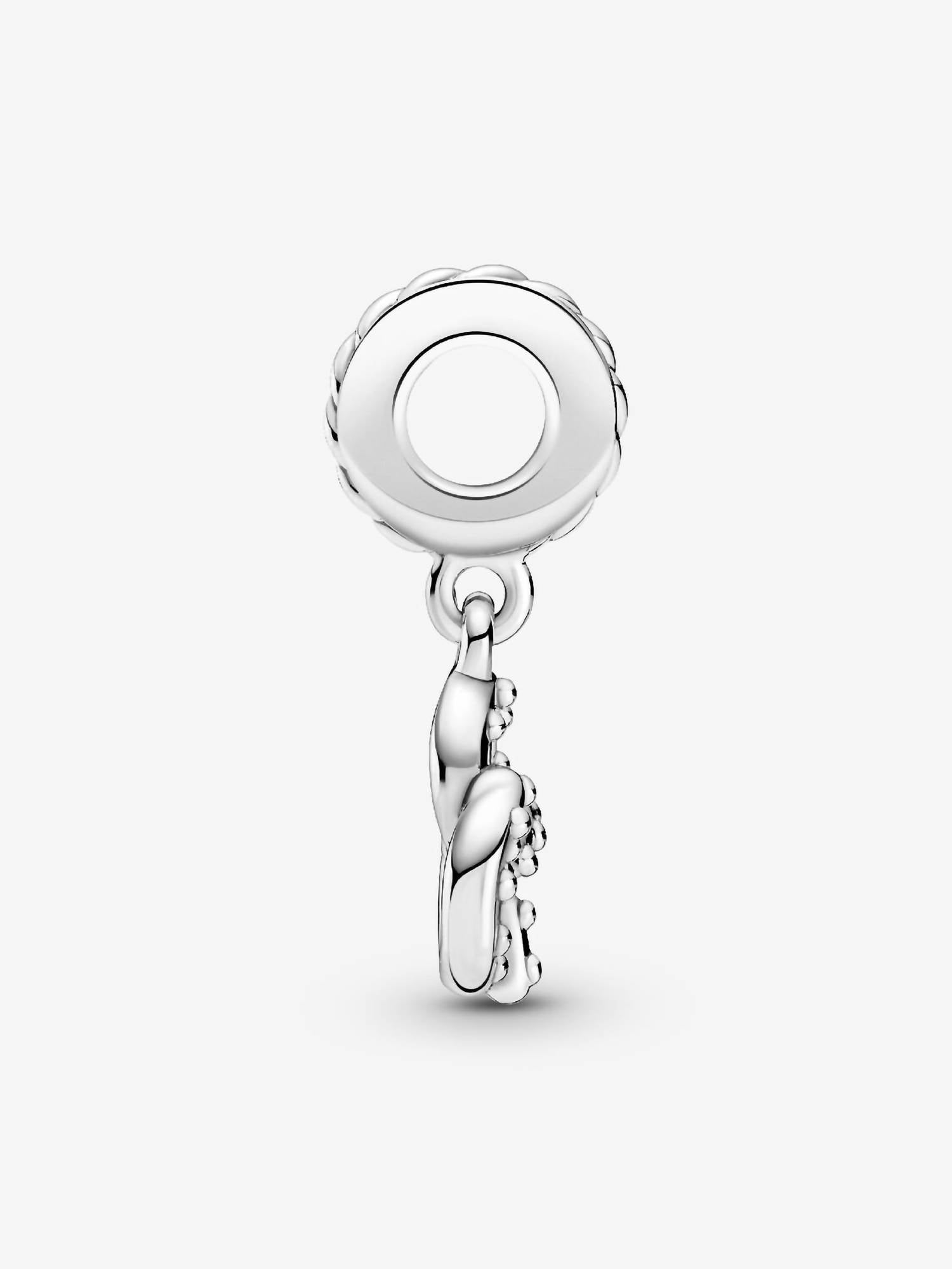 This bracelet will be your favorite go-to piece of the season. This piece is crafted from sterling silver, featuring a hand-finished pretzel shape accented with bead-like details to resemble salt. The charm measures 3.3mm deep, 10.7mm high, and 10.3mm wide, and bears the polished Pandora logo on the back. Twisted detailing on the bail adds a delightful touch reminiscent of dough, making it a perfect addition to your collection of food-inspired jewelry.
