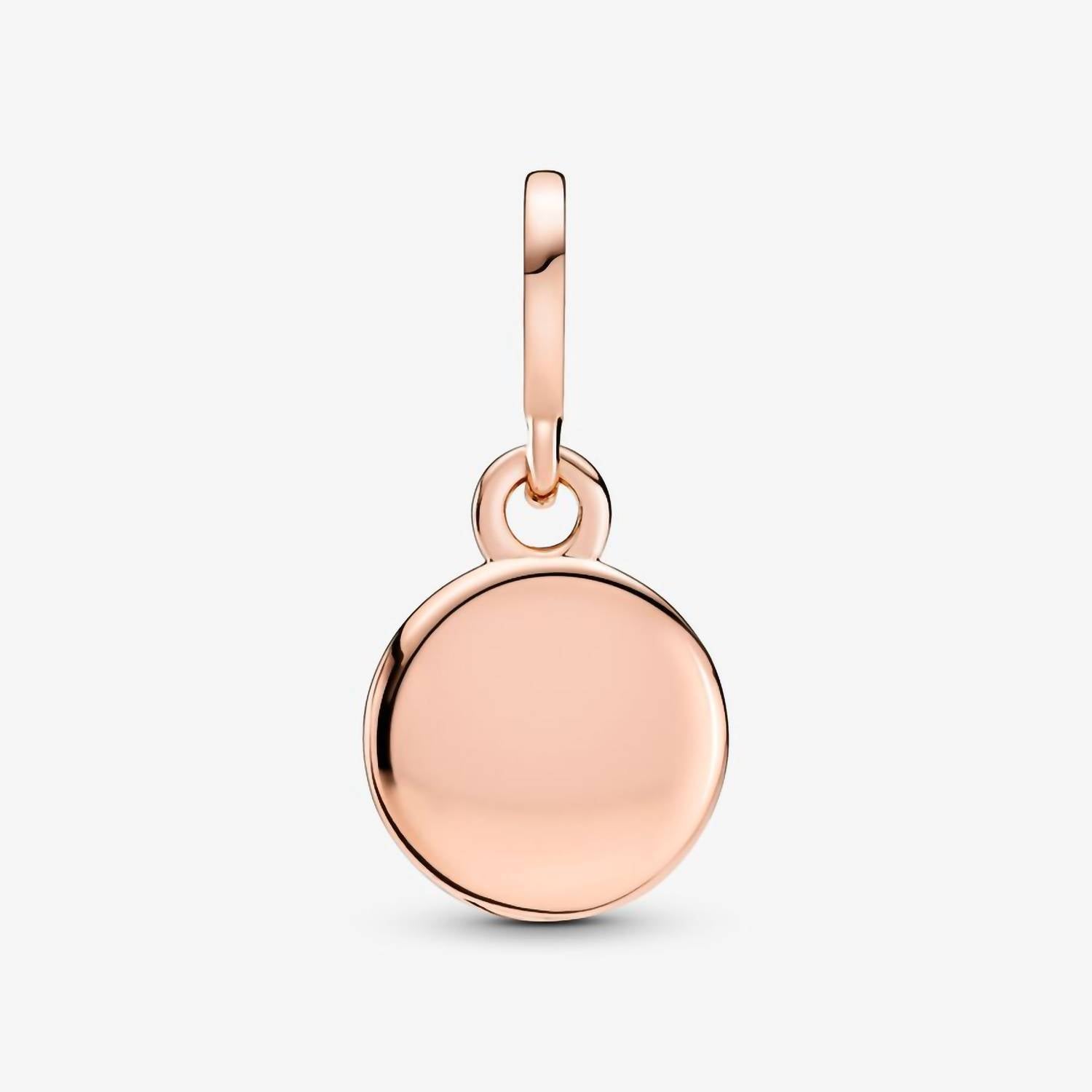 This fashion piece is meticulously hand-finished in 14k rose gold plating, featuring a front disc adorned with 19 bead-set brilliant-cut cubic zirconia. The charm's elegant design is complemented by a soft pink enamel back disc and Pandora's signature crown O, creating a harmonious tone-on-tone effect. Dimensions measure 3.6 mm in depth and 11.2 mm in height and width.