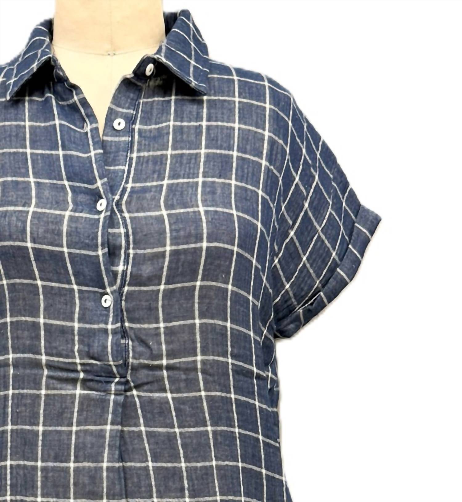 The perfect mini dress for those warmer months. Discover the Women's Double Face Plain Short Dress by PAPARAZZI, a chic addition to your wardrobe in a classic navy plaid pattern. This mini dress features rolled short sleeves and a button-front neckline for a laid-back yet stylish look. Made from 100% cotton, it offers a soft drape and shirt silhouette perfect for summer vacations. Closure: Button closure. Care: Machine wash.