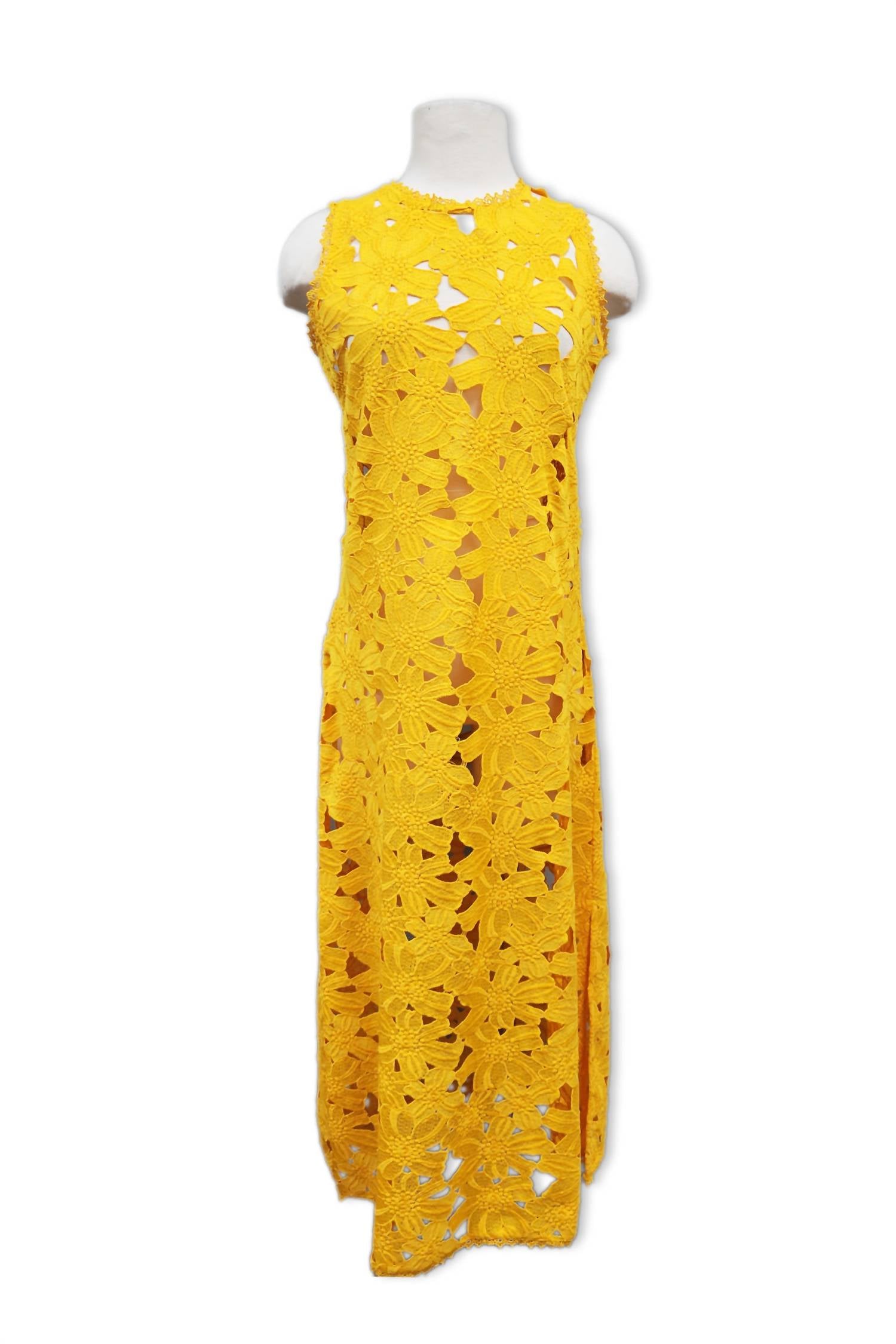 Who doesn't love a good maxi dress? This one you'll be reaching for season after season. Introducing the PAPARAZZI Lace Sleeveless Maxi Dress, a stunning statement piece in vibrant yellow perfect for summer vacations. Designed with intricate floral crochet and sheer, openwork detail, this shift silhouette embraces a vintage trend. It boasts a sleeveless crewneck style, crafted entirely from 100% Polyester. Care for this dress by hand washing and line drying to maintain its impeccable condition.
