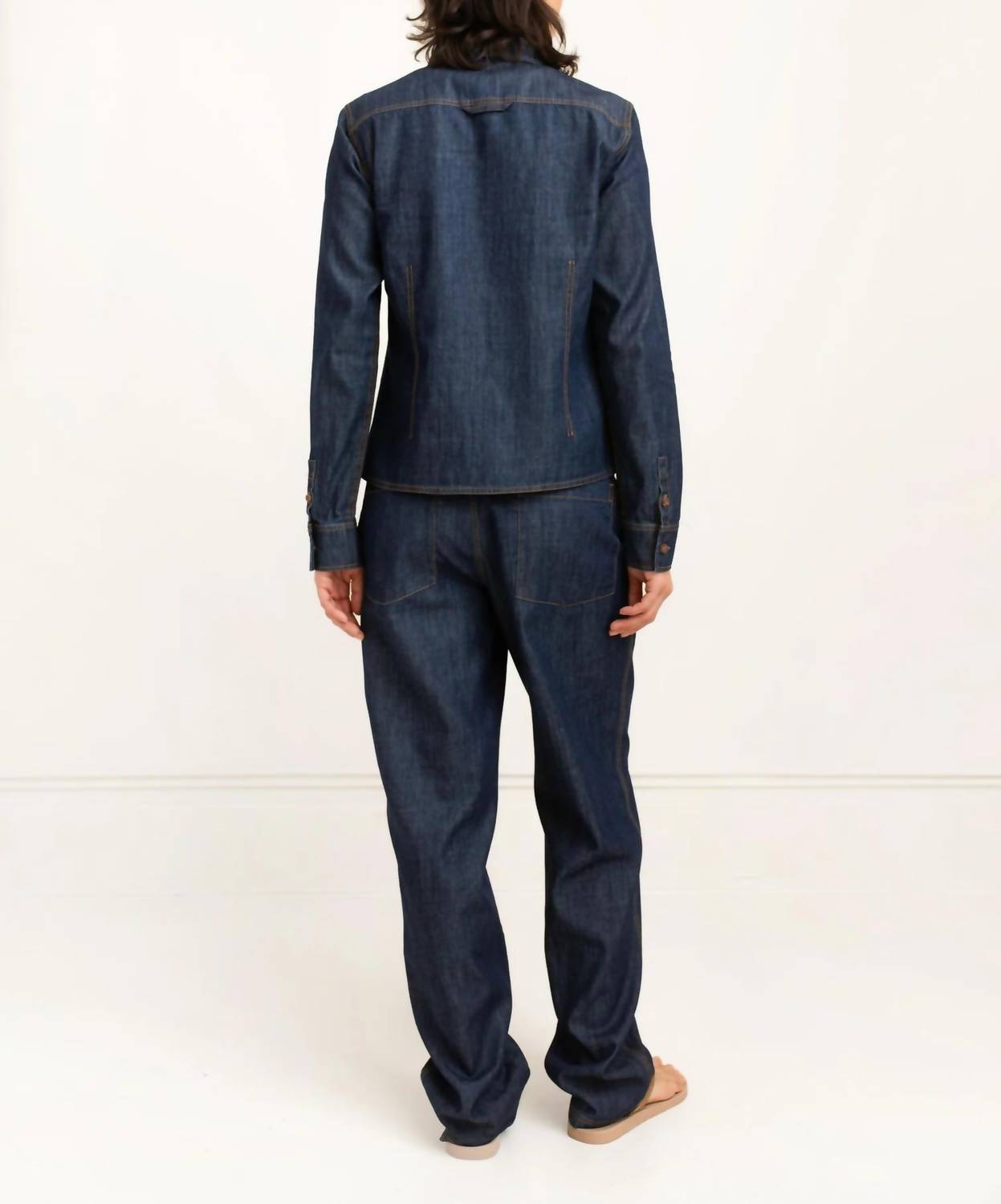 These must-have jeans are fit to perfection. Introducing the Agathe Denim Pant by Paper Label, a must-have for your wardrobe in a rich indigo hue, perfect for fall. These full-length pants feature a high-rise, straight leg, and a slightly tapered bottom for a flattering fit. Crafted from 100% cotton denim, these solid-patterned pants offer durability and effortless style for a range of occasions, whether for everyday wear or a back-to-school wardrobe staple. Care is easy with machine wash cold instructions; just remember to wash them inside out for best results. Enjoy the presence of pockets, adding practicality to this chic 90s fashion-inspired piece. Model is wearing a size Small with measurements of 29.5" waist, 39" hip, and 31" inseam.