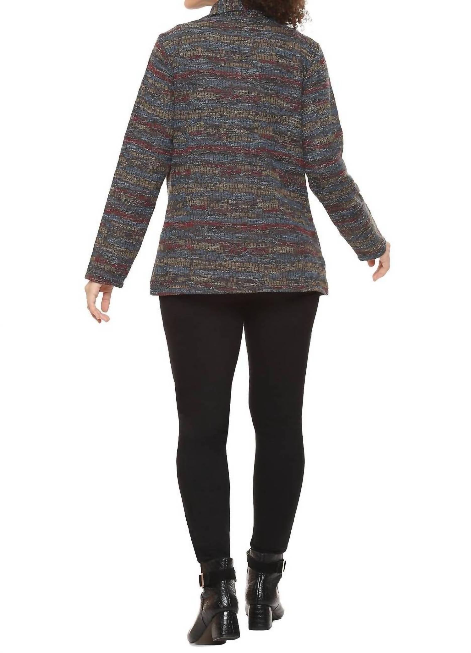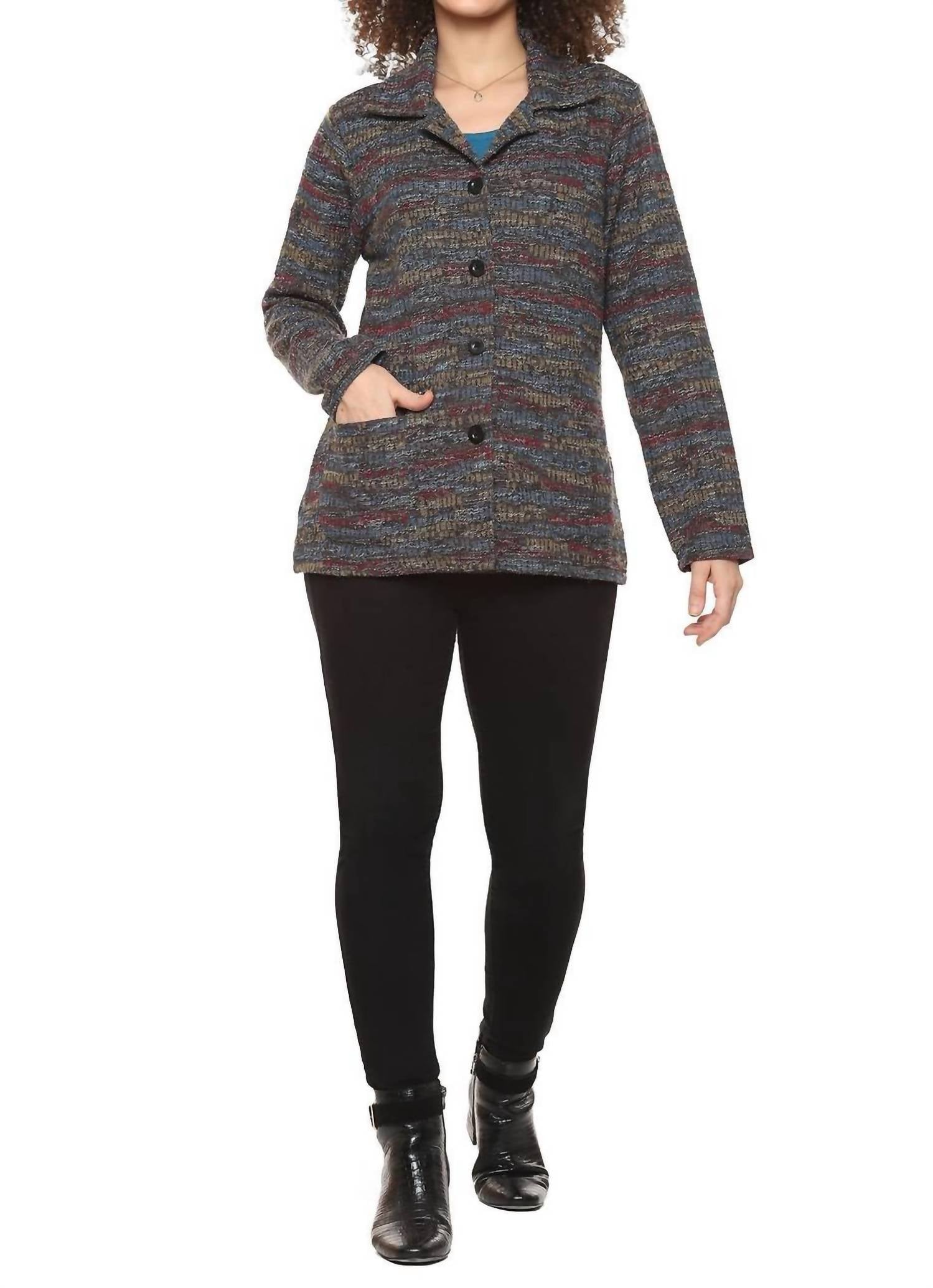 A jacket so versatile you can literally wear it with anything. The Megan Jacket by Parsley & Sage is a stylish addition to any dinner party ensemble with a minimalist patterned design. This women’s casual jacket in grey features long sleeves and a classic collar, making it perfect for spring evenings or Thanksgiving gatherings. While it has a button closure, the jacket does not include pockets, ensuring a sleek silhouette. For care, hand wash and line dry this elegant piece crafted without lining.
