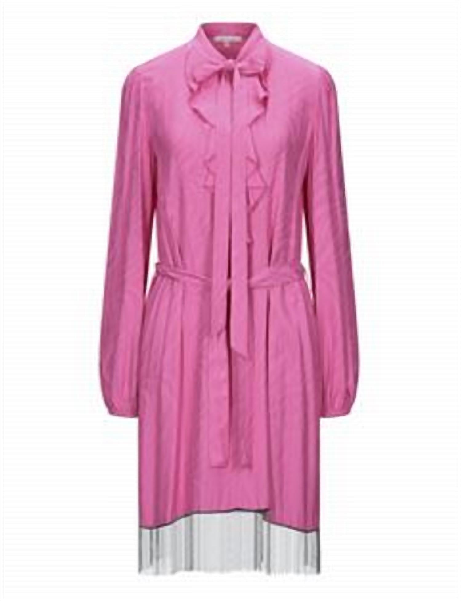 The pefect long sleeve dress for those cooler months. Long-sleeve top in a plain weave fabric with a bow collar and basic solid color. Features metal accents and a coordinating belt. Unlined and designed without pockets. Composition: 100% Viscose, with Polyester and Brass details.