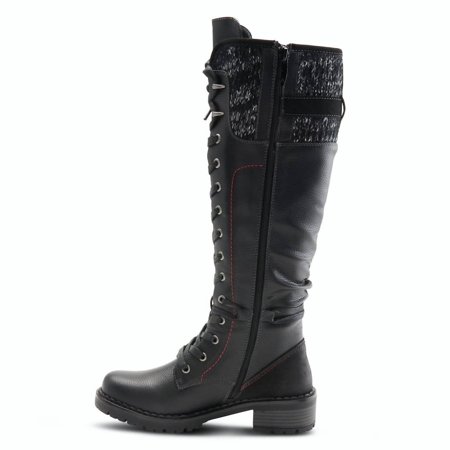 Upgrade your shoe game with these stylish lace-up boots, designed to merge sophistication and comfort. You'll be reaching for these shoes season after season. Introducing the Women Chilly Knit Cuff Mixed Media Tall Vegan Boot by Patrizia, a stylish choice for fall streetwear enthusiasts. This lace-up boot combines a cozy knit cuff and buckle strap detail for a mixed-media appeal with a slight slouch. Crafted from textile and vegan leather, it features a warm faux fur lining and insole, making it ideal for cooler temperatures. The design includes a comfortable faux stacked heel of 1 5/8 inches and a flexible lug sole, ensuring both fashion and function. Embrace the season with this versatile piece, perfect for concert outings. Closure: Zipper.
