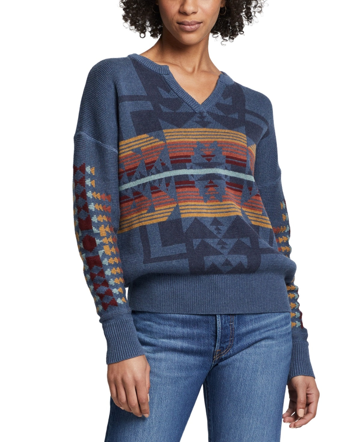 Pendleton's patterned cottON sweater features a split neckline for easy pull-ON wear.| Imported| Split neckline| | CONnect with a stylist & get free expert advice ONline or in stores for your wardrobe| home & more. Book Now|