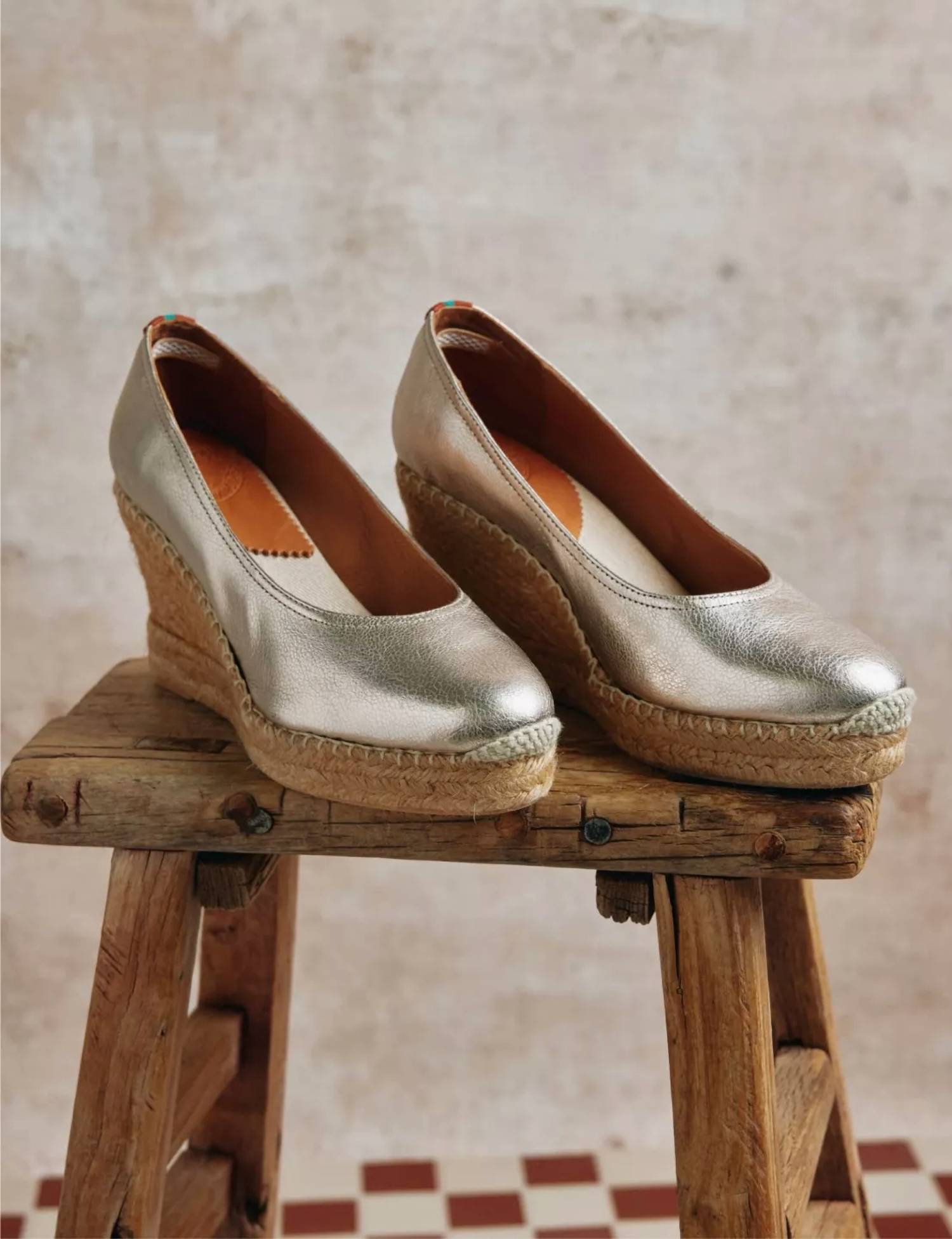 Pair these with white denim or your favorite day dress. Step into effortless summer style with the Penelope Chilvers Scoop Leather Espadrille in classic navy. Expertly crafted by Spanish artisans, this elegant wedge heel design offers a round toe for a chic and timeless look. These espadrilles are perfect for vacation wear, especially during the summer and Thanksgiving holiday season. Made of luxurious leather, these shoes bring a touch of sparkle to any outfit and are an essential addition to your warm-weather wardrobe.