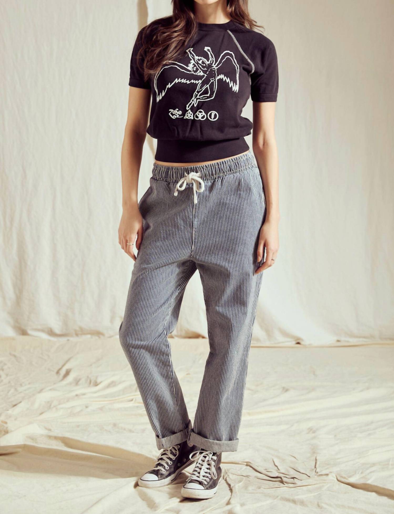 This classic, short sleeve tee will be your go-to staple this season and beyond. Celebrate your love for rock legends with the Led Zeppelin Short Sleeve Icarus Raglan by People of Leisure. This black, graphic tee features short sleeves and showcases the iconic Icarus logo alongside each band member's symbol, with their last names boldly printed on the back. Ethically made in Los Angeles, this crewneck tee is crafted from 100% cotton for comfort. Care for this timeless piece with a machine wash, and tumble dry on low. Available in sizes S-XL.