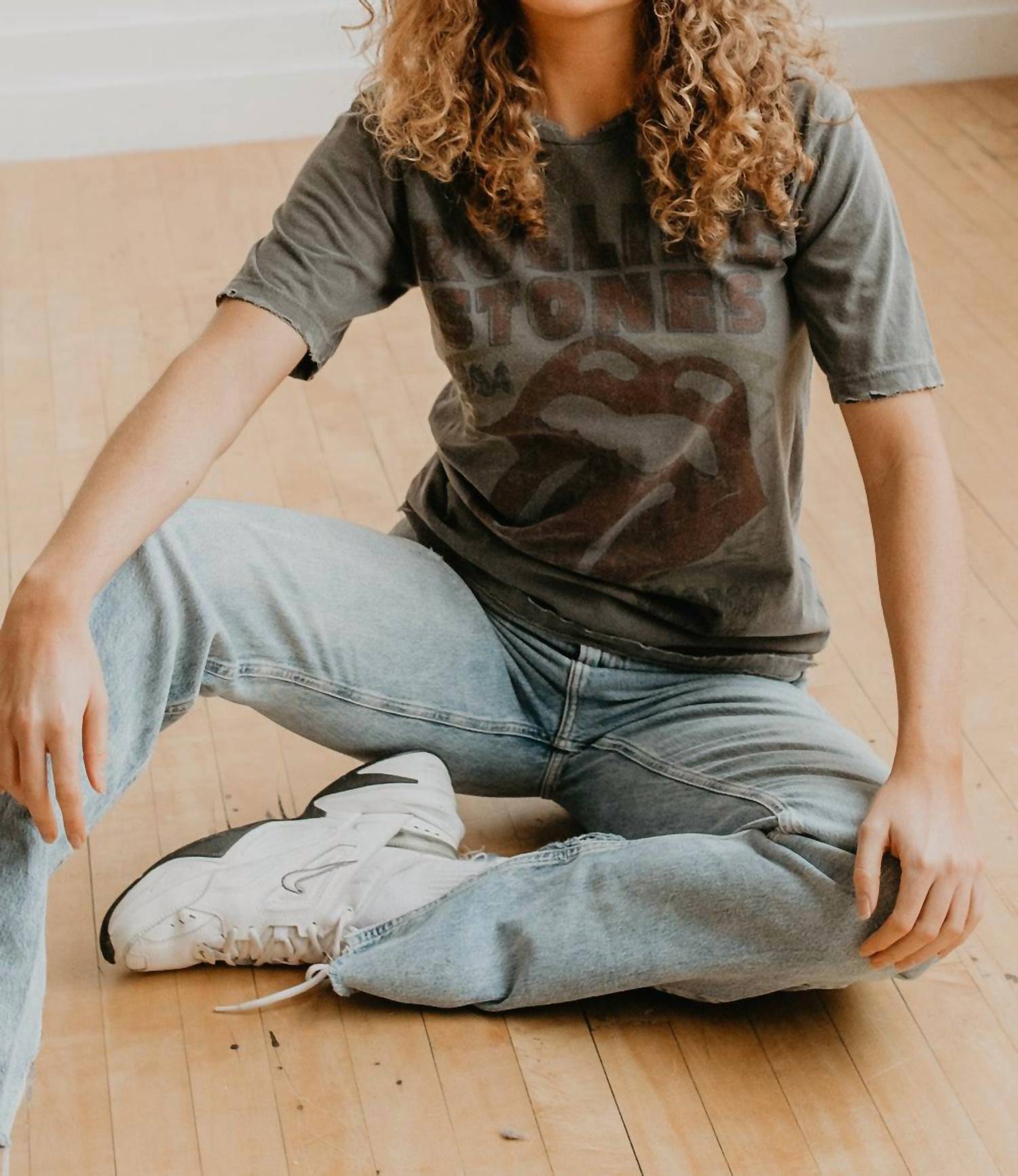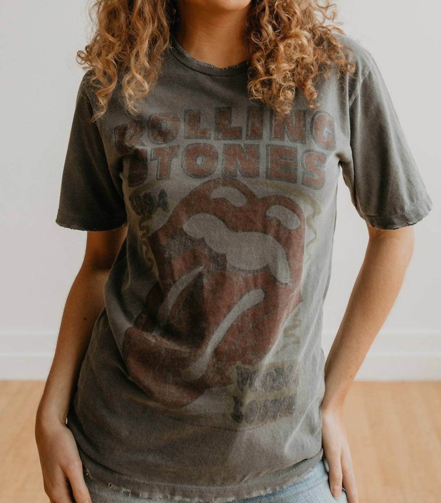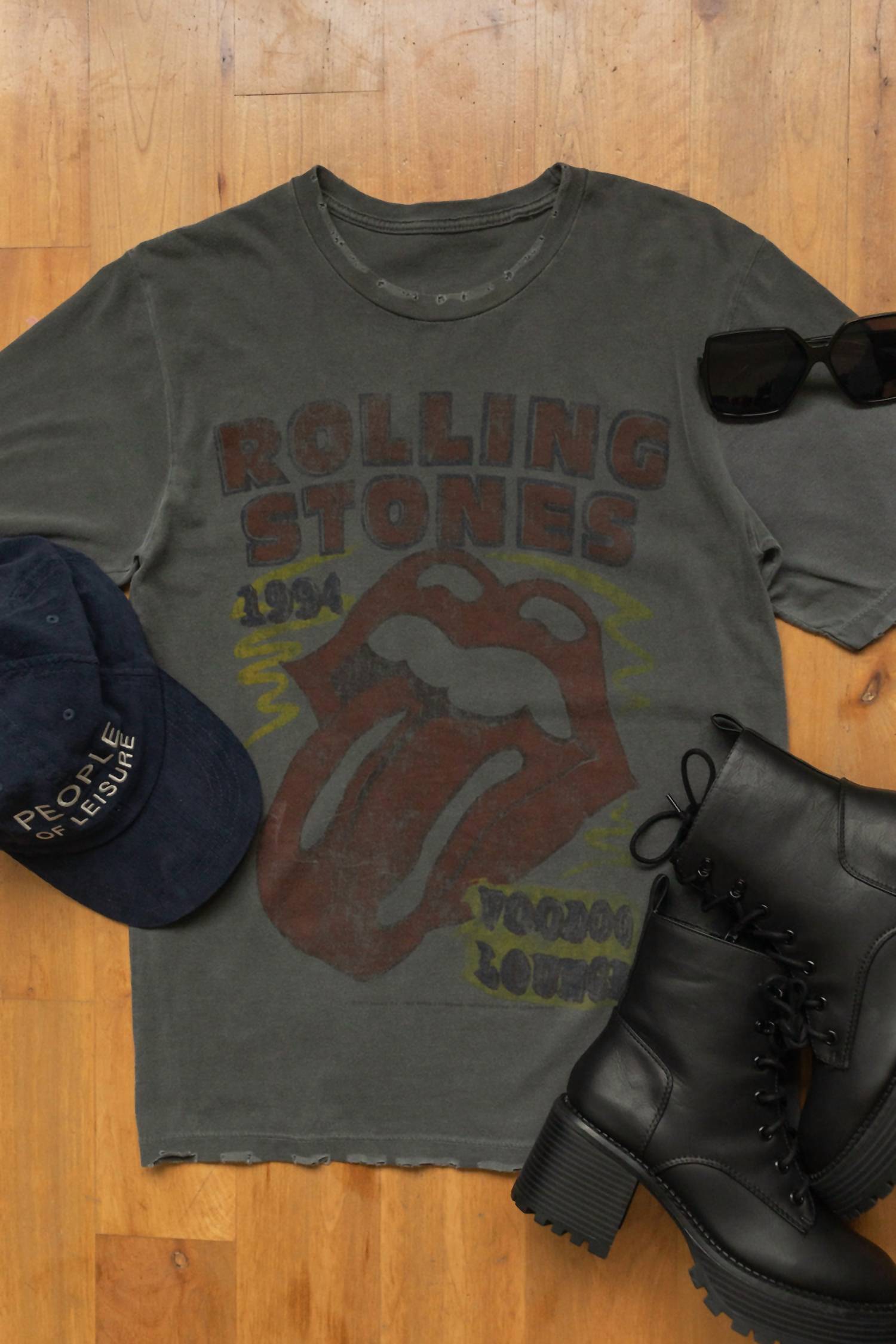 The short sleeve tee you'll want in every color. Introducing the Rolling Stones "Voodoo Lounge" Graphic Tee by People of Leisure, a throwback to the 90s in a stylish and edgy design. This short sleeve crewneck tee in Vintage Black features a distinctive graphic pattern and distressing for added flair. Crafted from 100% organic cotton, it is ethically made in Los Angeles, CA, and offers a comfortable pull-on closure. Easy care instructions include machine wash cold or warm and tumble dry on low. Available in sizes S-XL.
