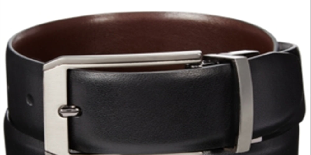 Perry Ellis Men's Tone Matte and Shine Buckle Reversible Belt Black Size 42