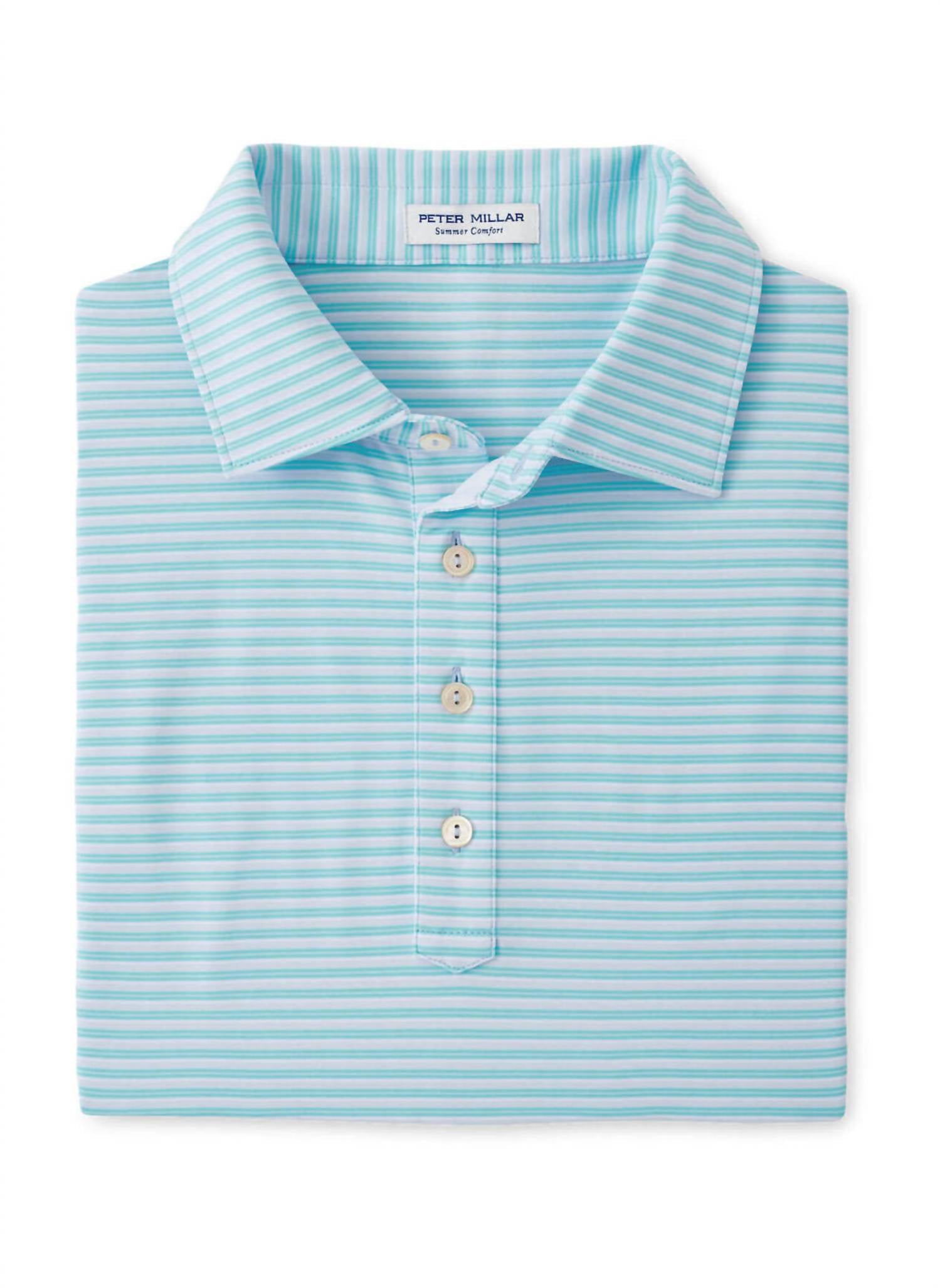 The Bishop Performance Jersey Polo by Peter Millar in Shaved Ice offers a stylish take on the classic polo. Crafted from 92% polyester and 8% spandex, this short-sleeve piece boasts a four-way stretch and moisture-wicking properties, ensuring comfort and coolness. It features a Hogan hard collar and a four-button placket for a refined finish, with UPF 50+ sun protection for added outdoor safety. Care is a breeze with machine wash and tumble dry instructions; just avoid ironing and dry cleaning.