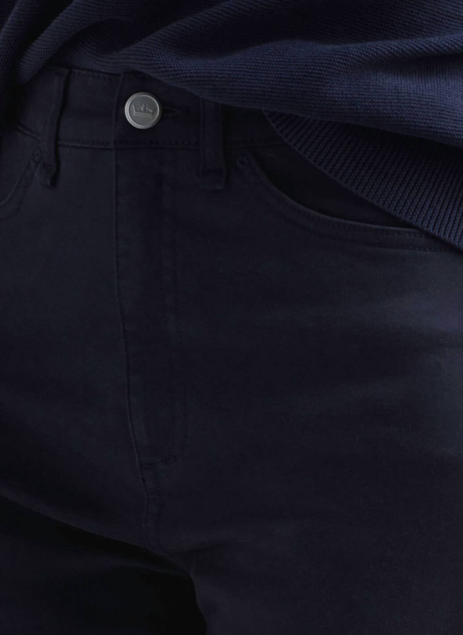 This straightleg pant is both stylish and comfortable. Did we mention the fit is perfection? Elevate your wardrobe with the Karlie Stretch Sateen High Rise Pant by PETER MILLAR, a stylish choice for any occasion. Designed for women, these pants are cut from a soft, cotton blend featuring 59% cotton, 31% modal, 8% polyester, and 2% spandex, and offer an 11" rise for a flattering fit. They are crafted to maintain comfort and mobility with a stretchable fabric, a zip closure, and a straight-leg base category in navy solid pattern. With a 28" inseam, side pockets, and a notched ankle hem, these pants are as functional as they are fashionable. Care instructions: Machine wash cold with like colors, lay flat to dry.