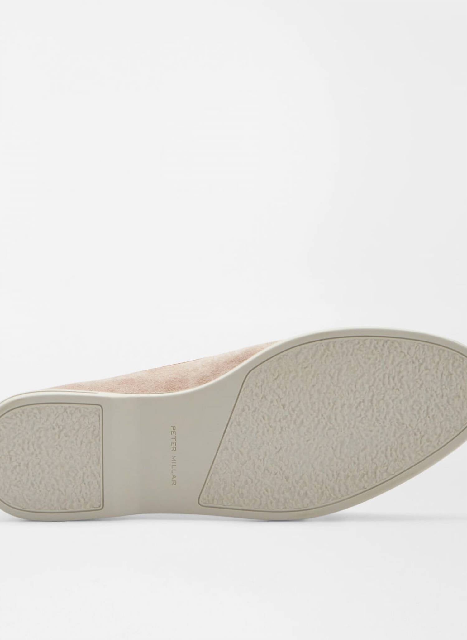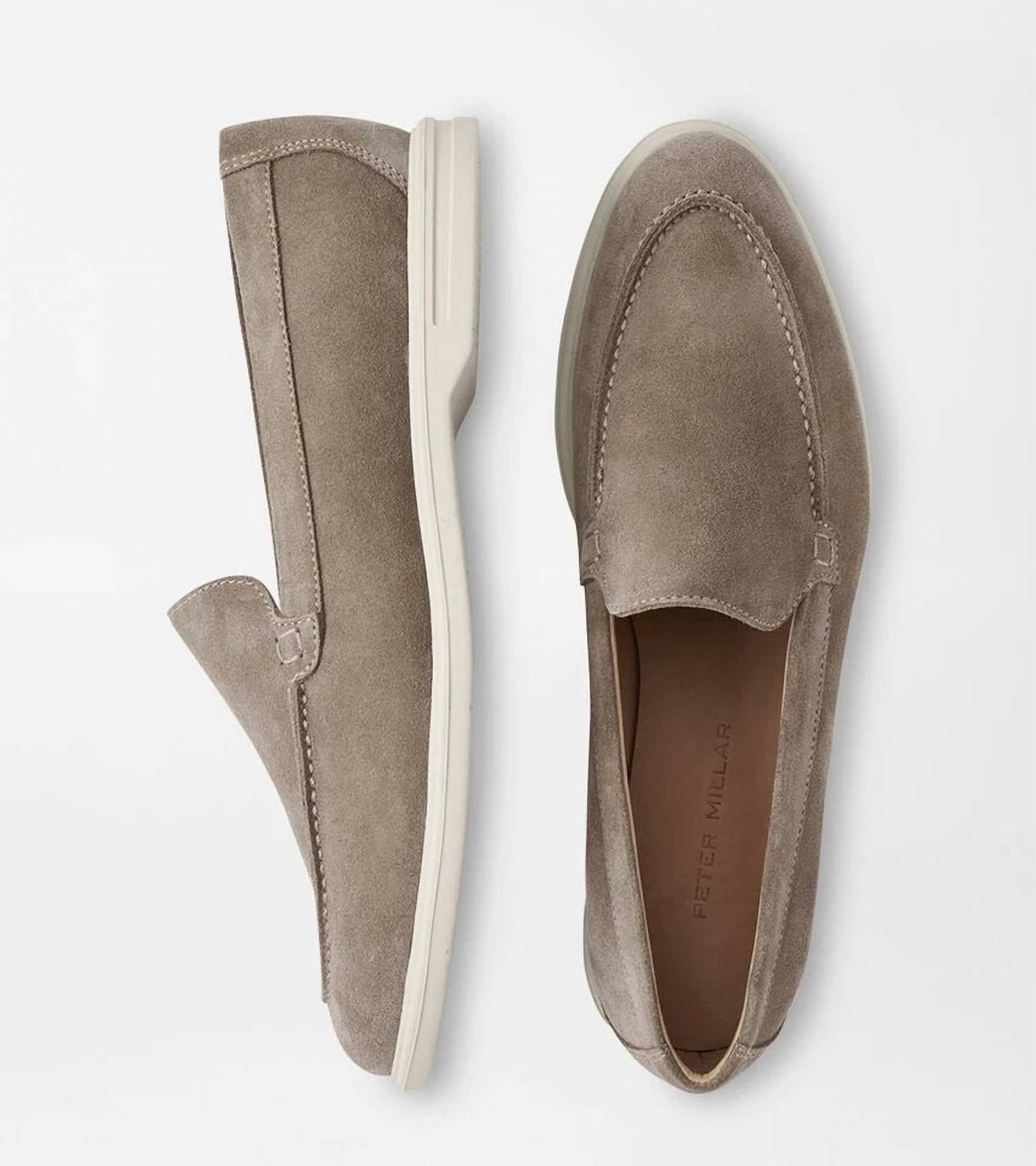 Step into sophistication with the Men's Excursionist Venetian Loafer by Peter Millar, elegantly crafted in pebble-colored suede. These loafers boast a pointed toe and flat heel, offering both style and comfort for any occasion. Made from premium suede material, these shoes are an ideal choice for the modern man seeking versatility and elegance in his footwear collection.